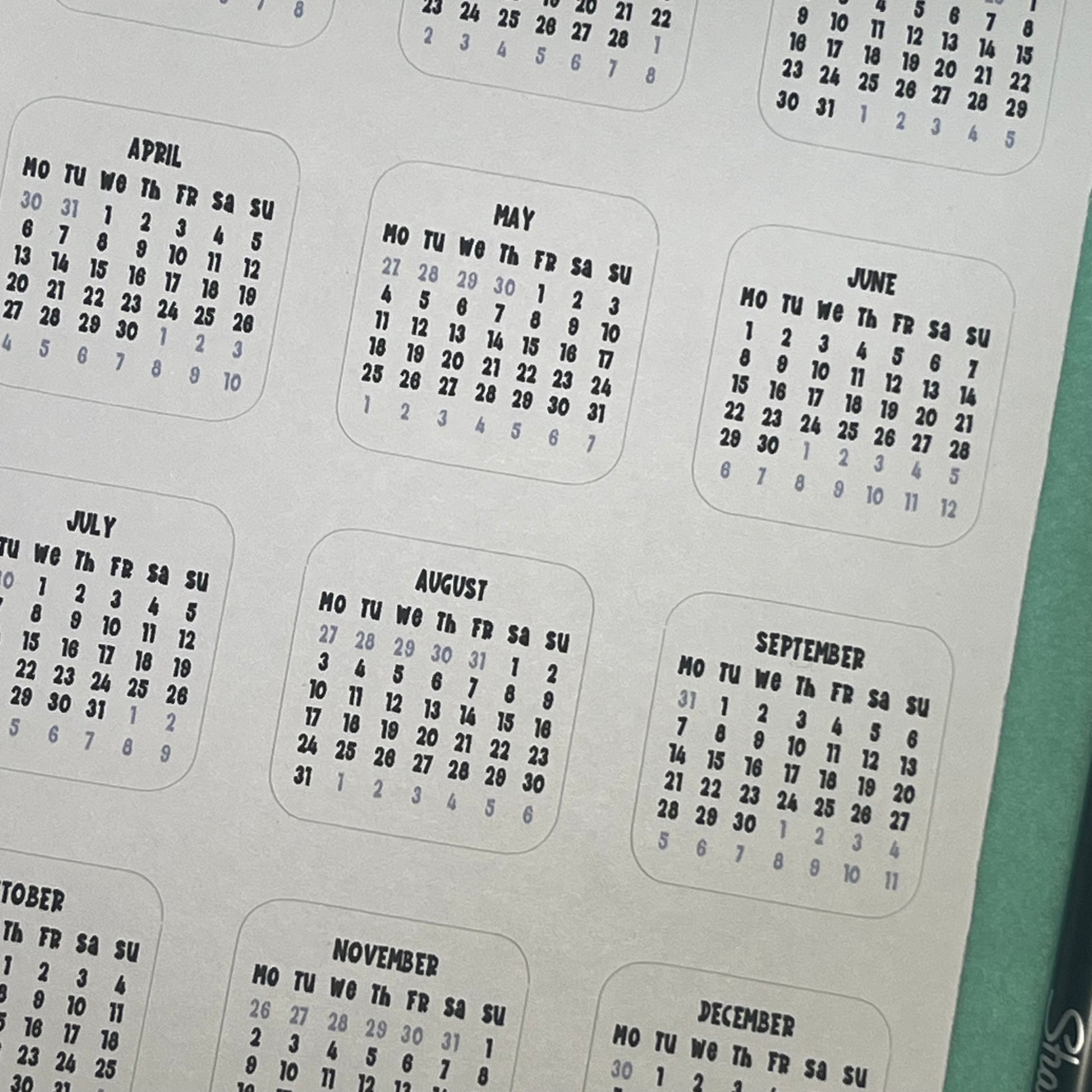 2026 - 1.25" Calendar Functional Sticker Sheet