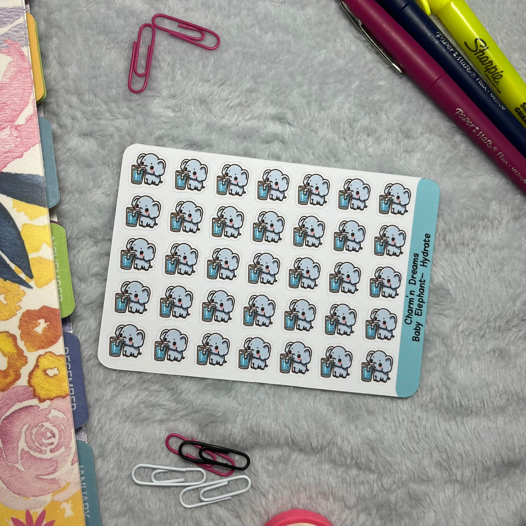 B Elephant Hydrate Icon Planner Stickers