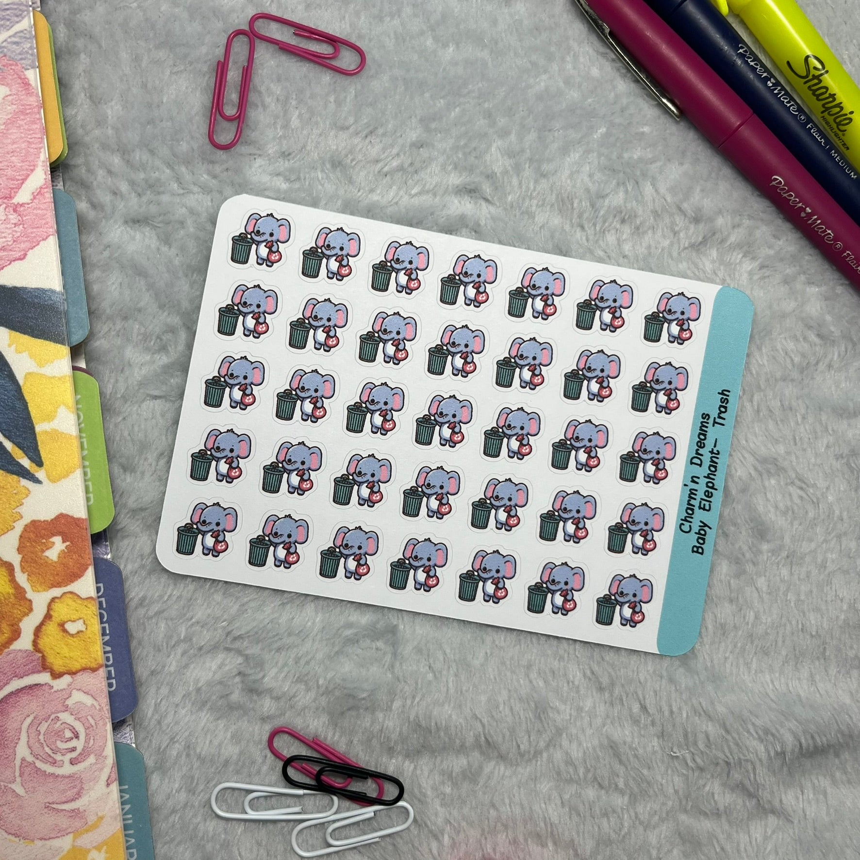 B Elephant Trash Icon Planner Stickers