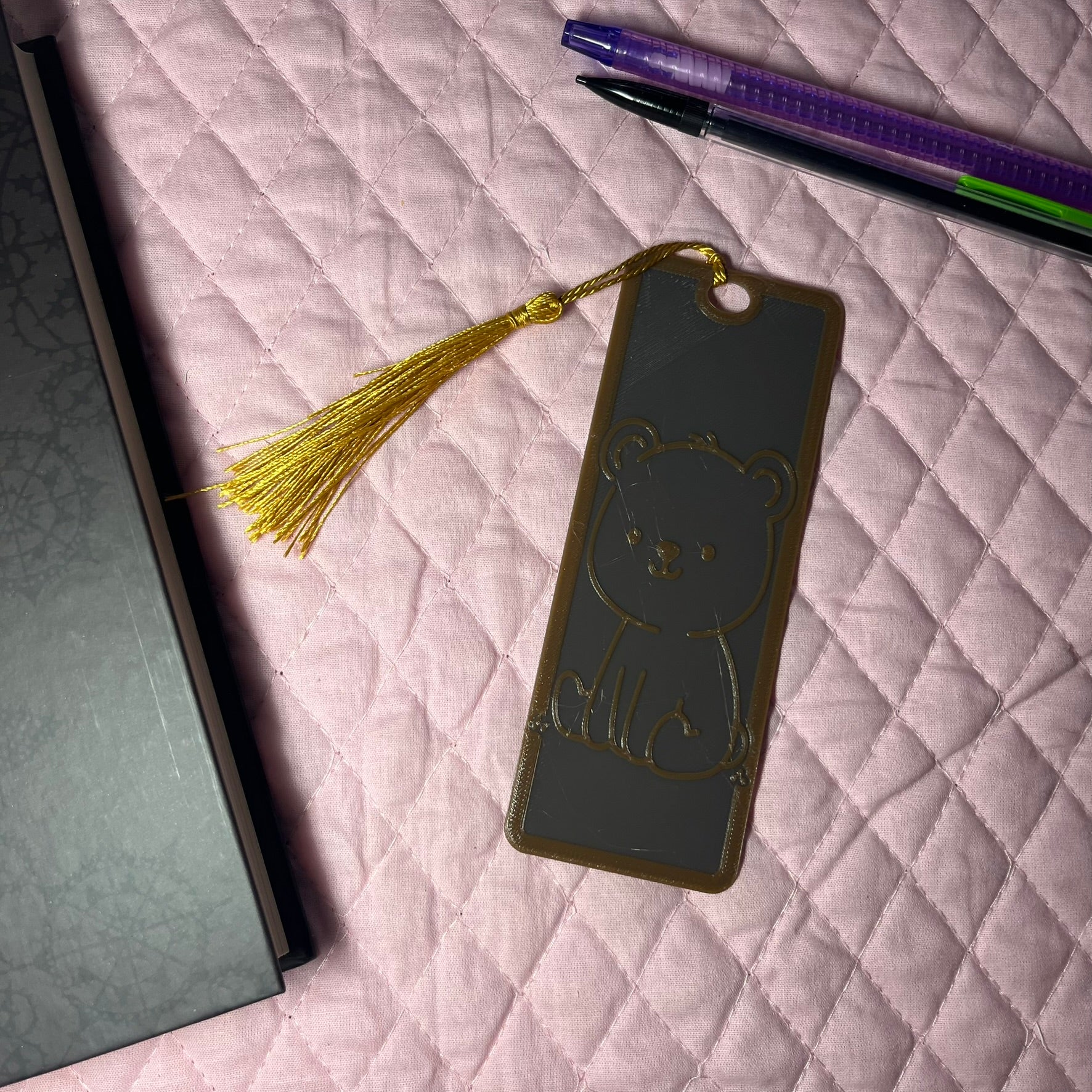 A Beary Cute Bookmark 3d printed (PETG) Bookmark! The 3d printed file is created and printed in house for a fun and meaningful product.