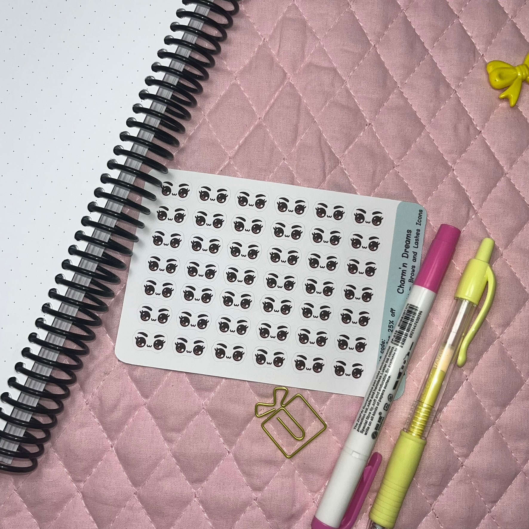 Make planning and journaling more fun with our Beauty Brows and Lashes Icon Planner Stickers. Use these stickers as a reminder for appointments or to prioritize self-care. These stickers add a playful touch to your planner and make staying organized a little more enjoyable.