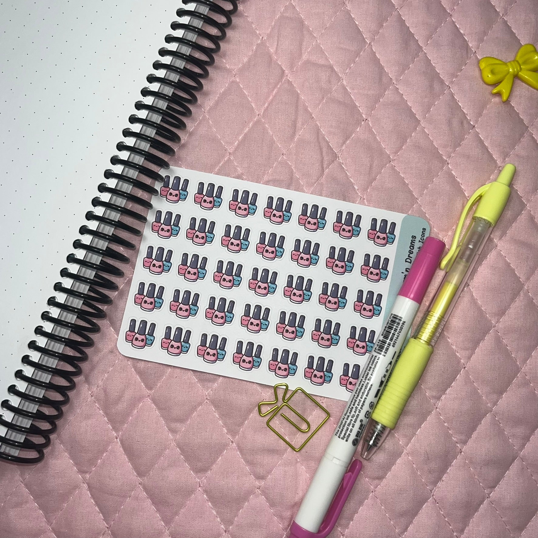 Make planning and journaling more fun with our Beauty Nail Polish Icon Planner Stickers. Use them to mark beauty appointments or as a reminder to prioritize self-care. These stickers add a playful touch to your planner and make staying organized a little more enjoyable.