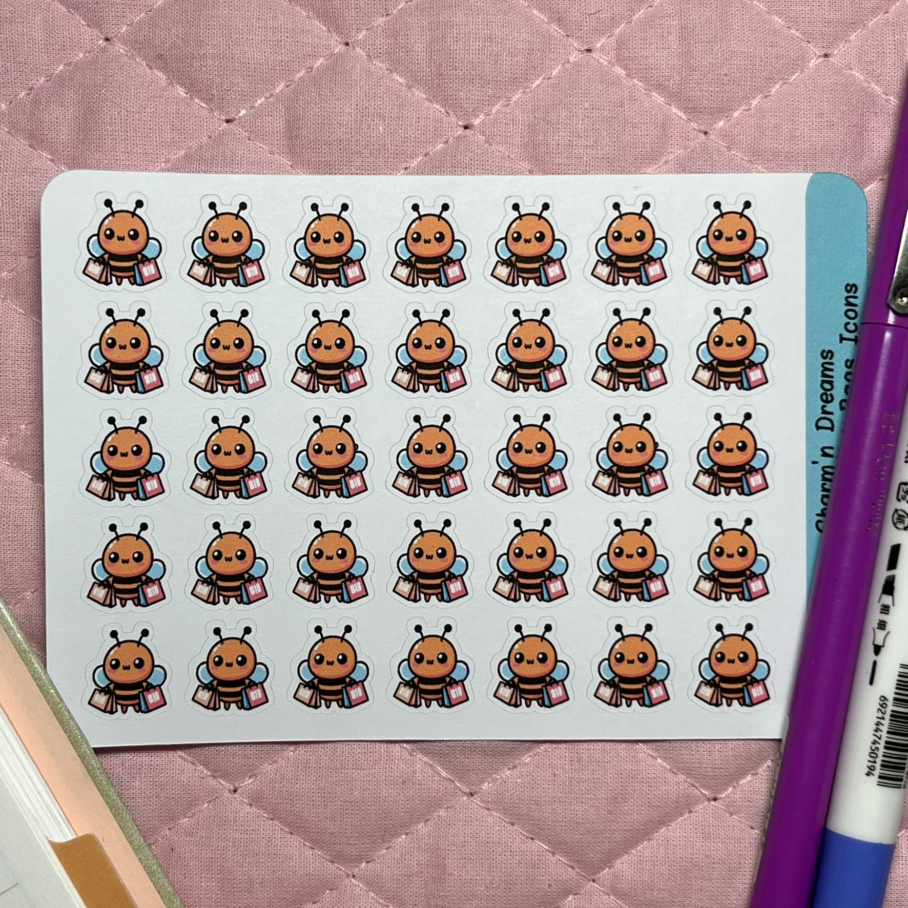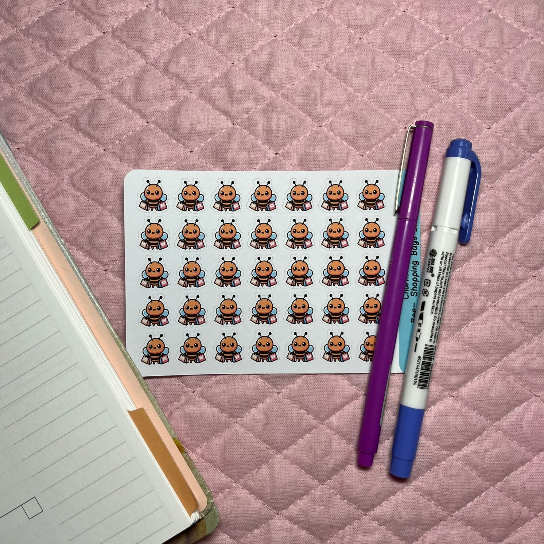 Organize and stylize your planner or journal with these Bee Shopping Bags Icon Planner Stickers. Keep track of your busy schedule with ease and add a touch of fun with these cute stickers. Perfect for shoppers and busy bees alike.