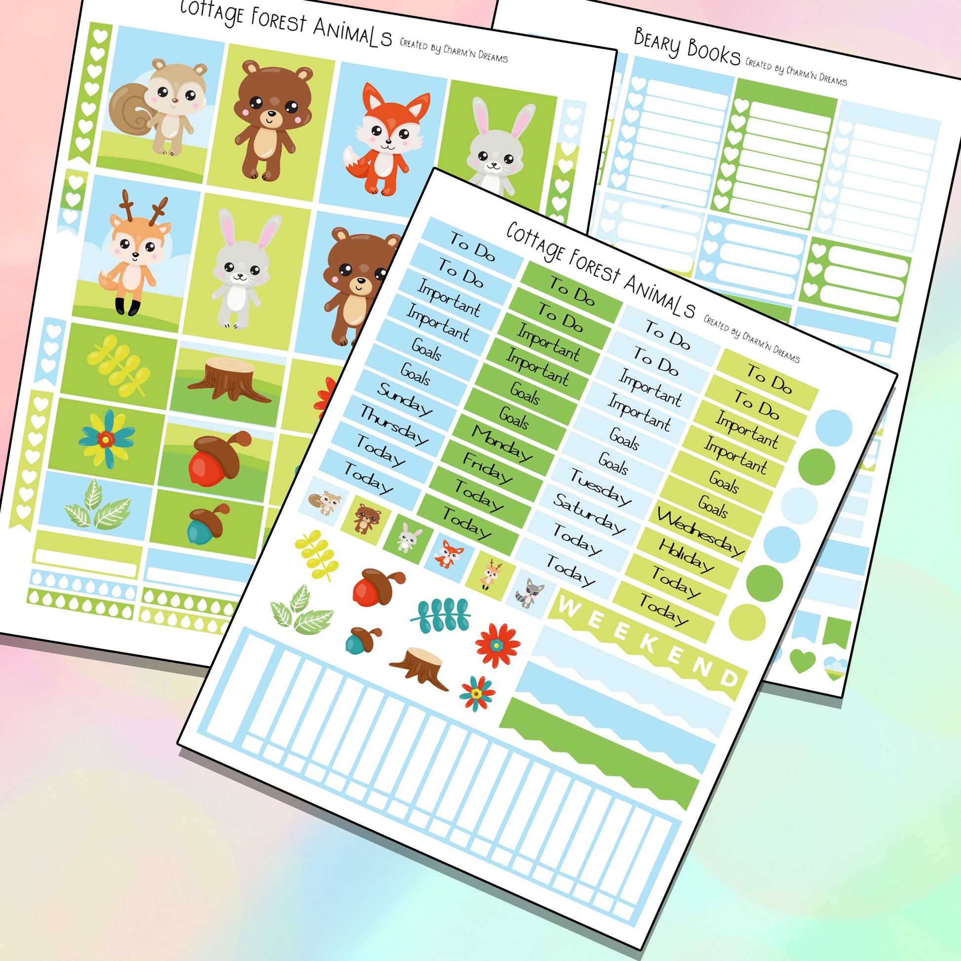Cottage Forest Animals Planner Sticker Kit - Digital Download