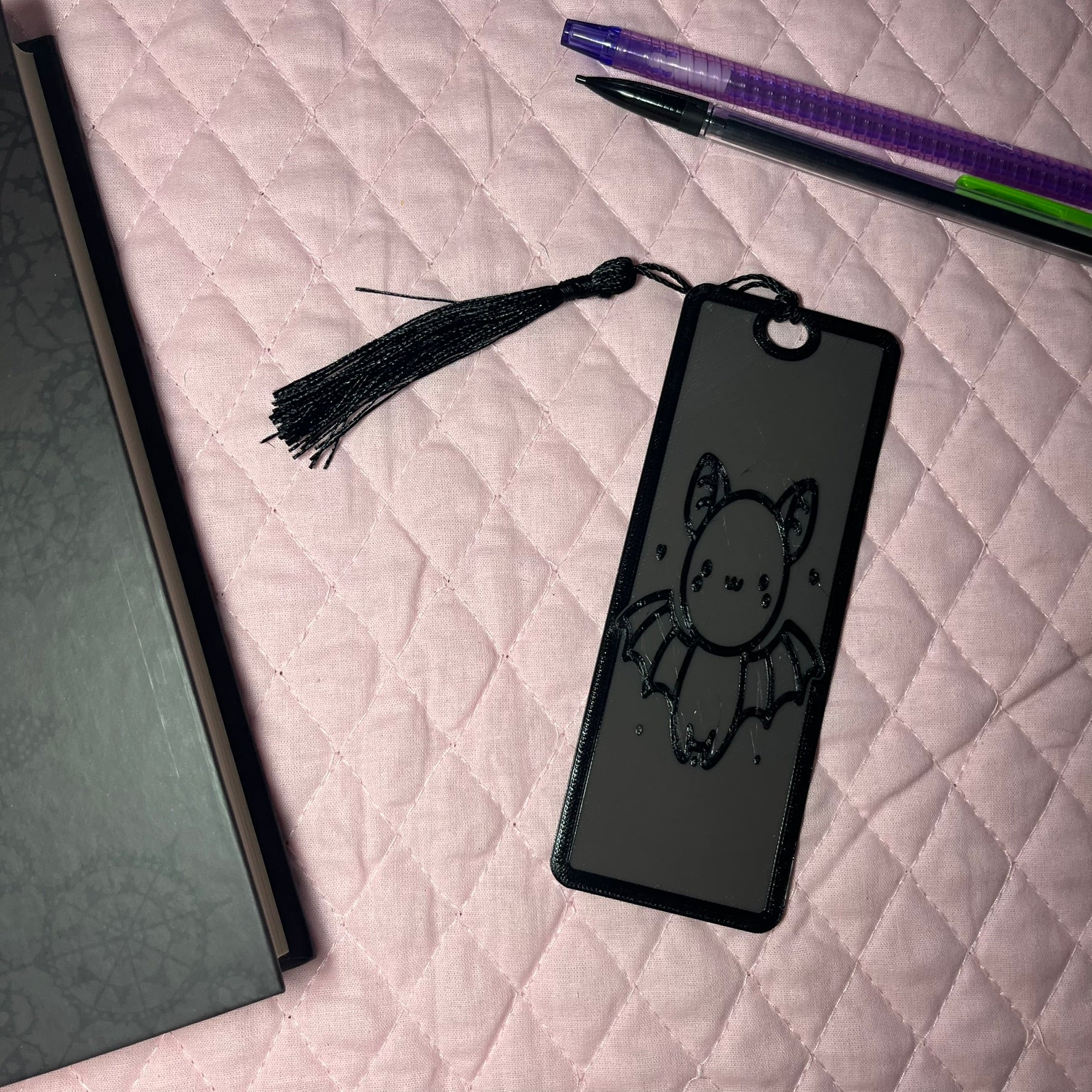 A Cute Bat Bookmark 3d printed (PETG) Bookmark! The 3d printed file is created and printed in house for a fun and meaningful product.