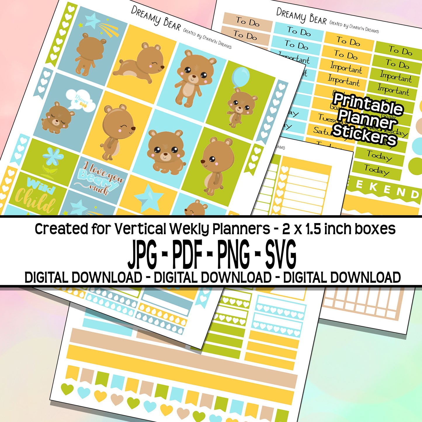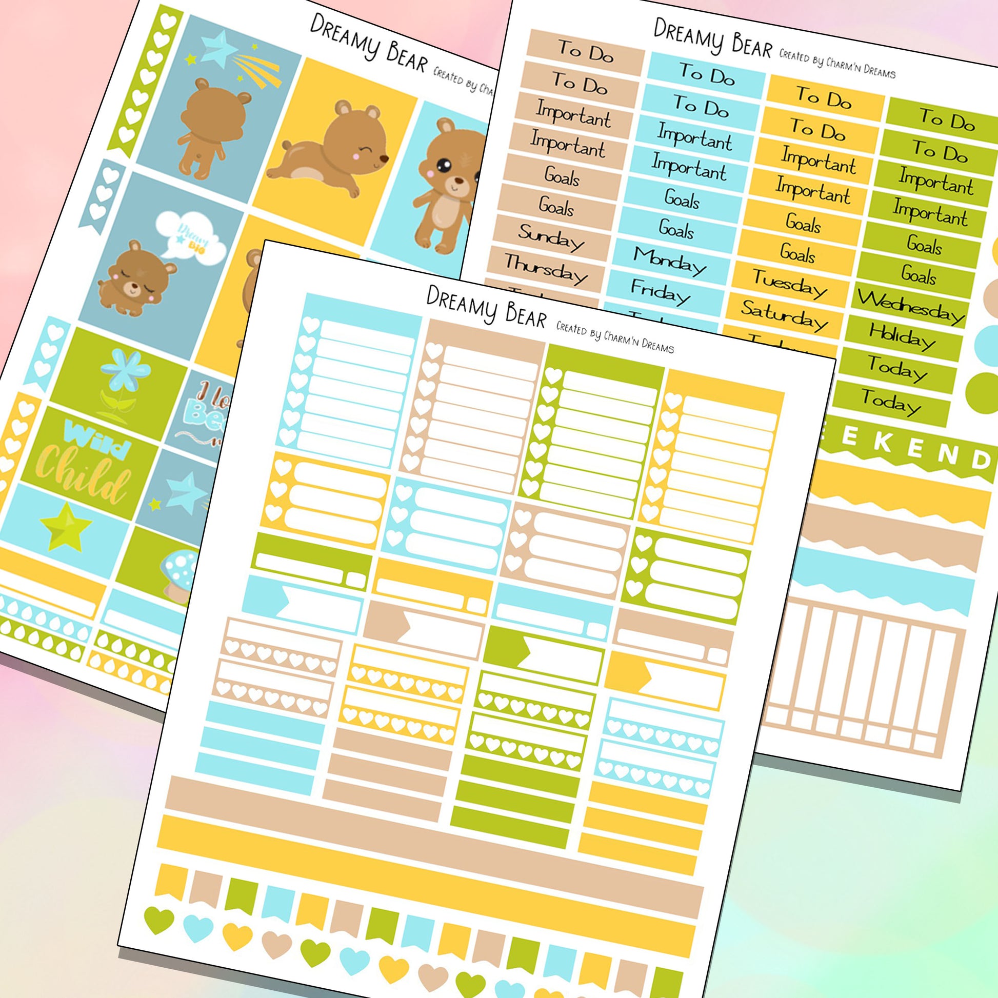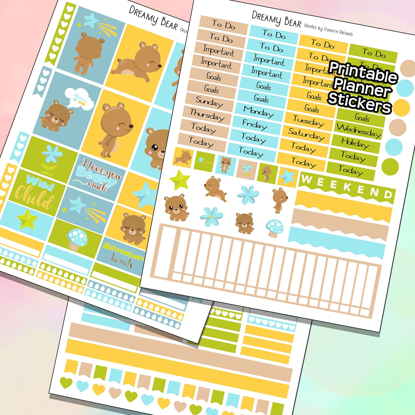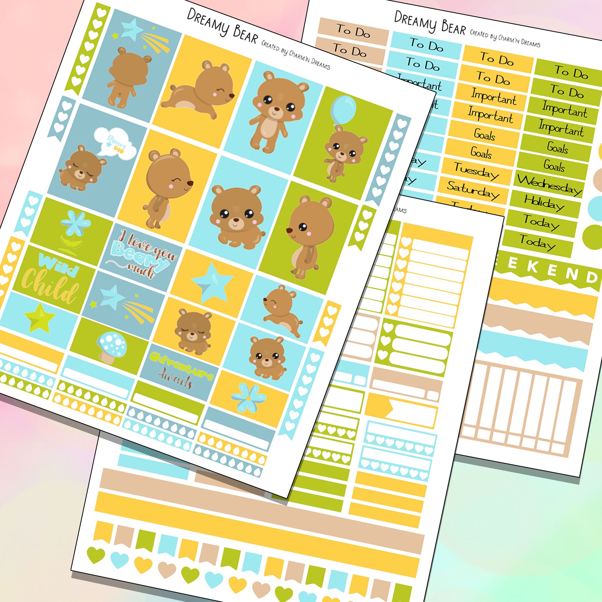 Dreamy Bear Planner Sticker Kit - Digital Download