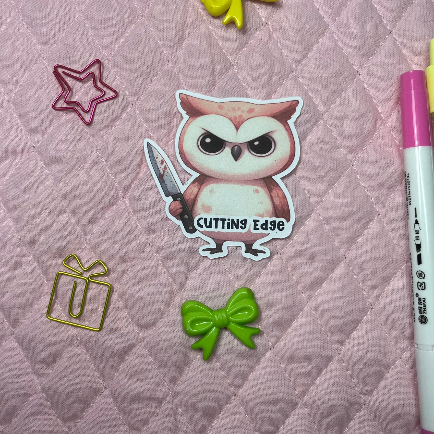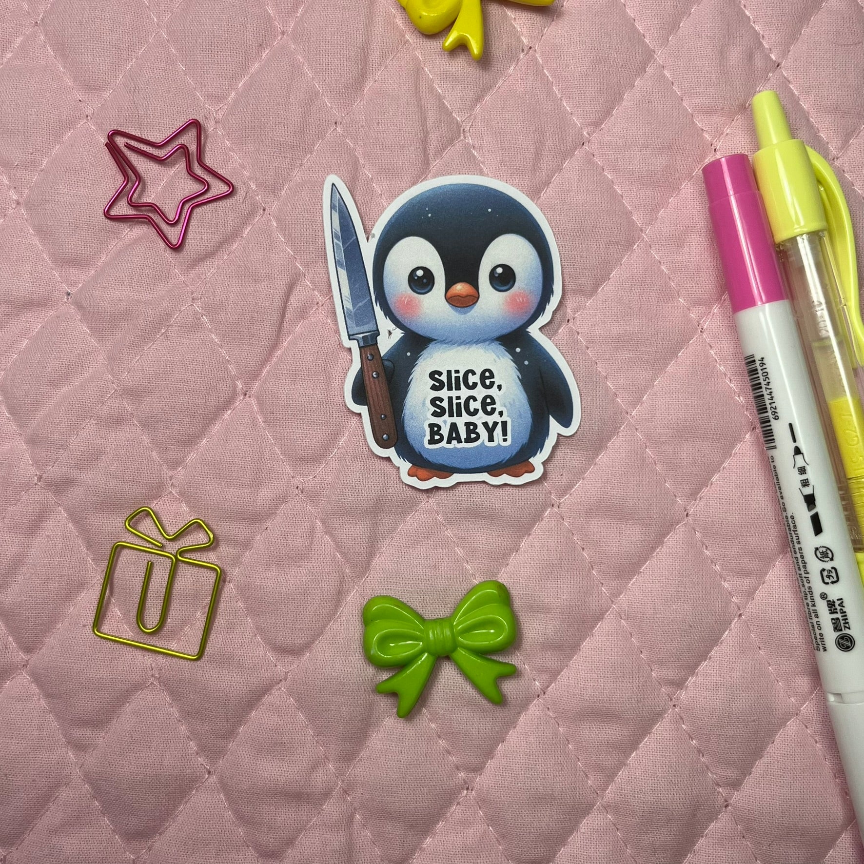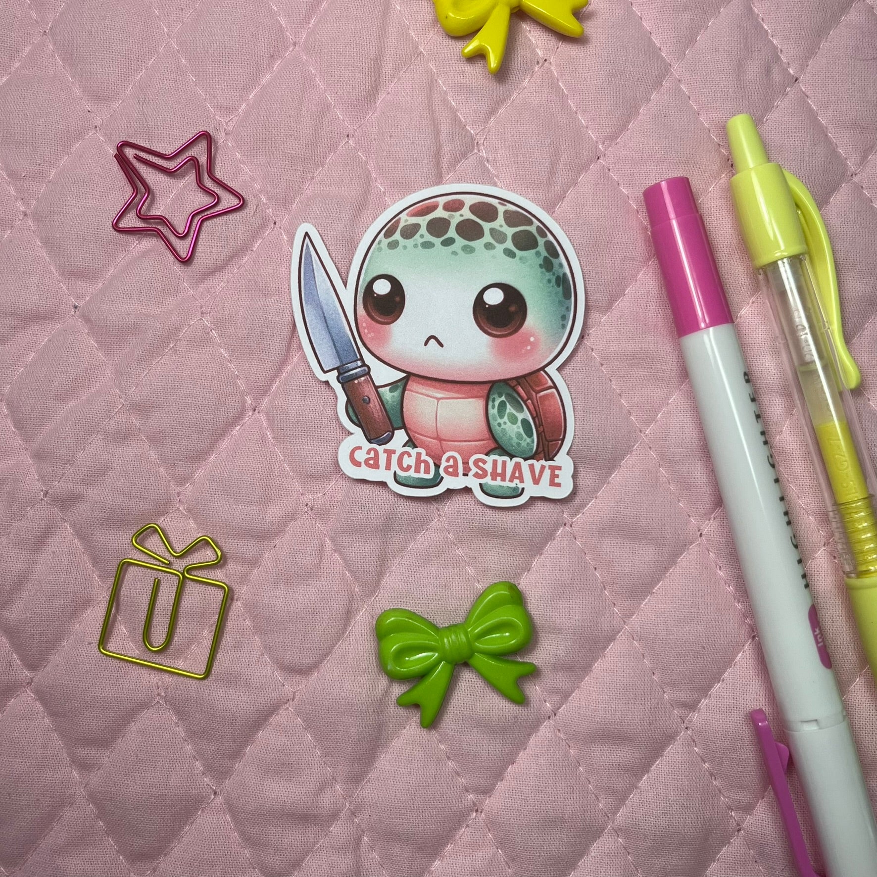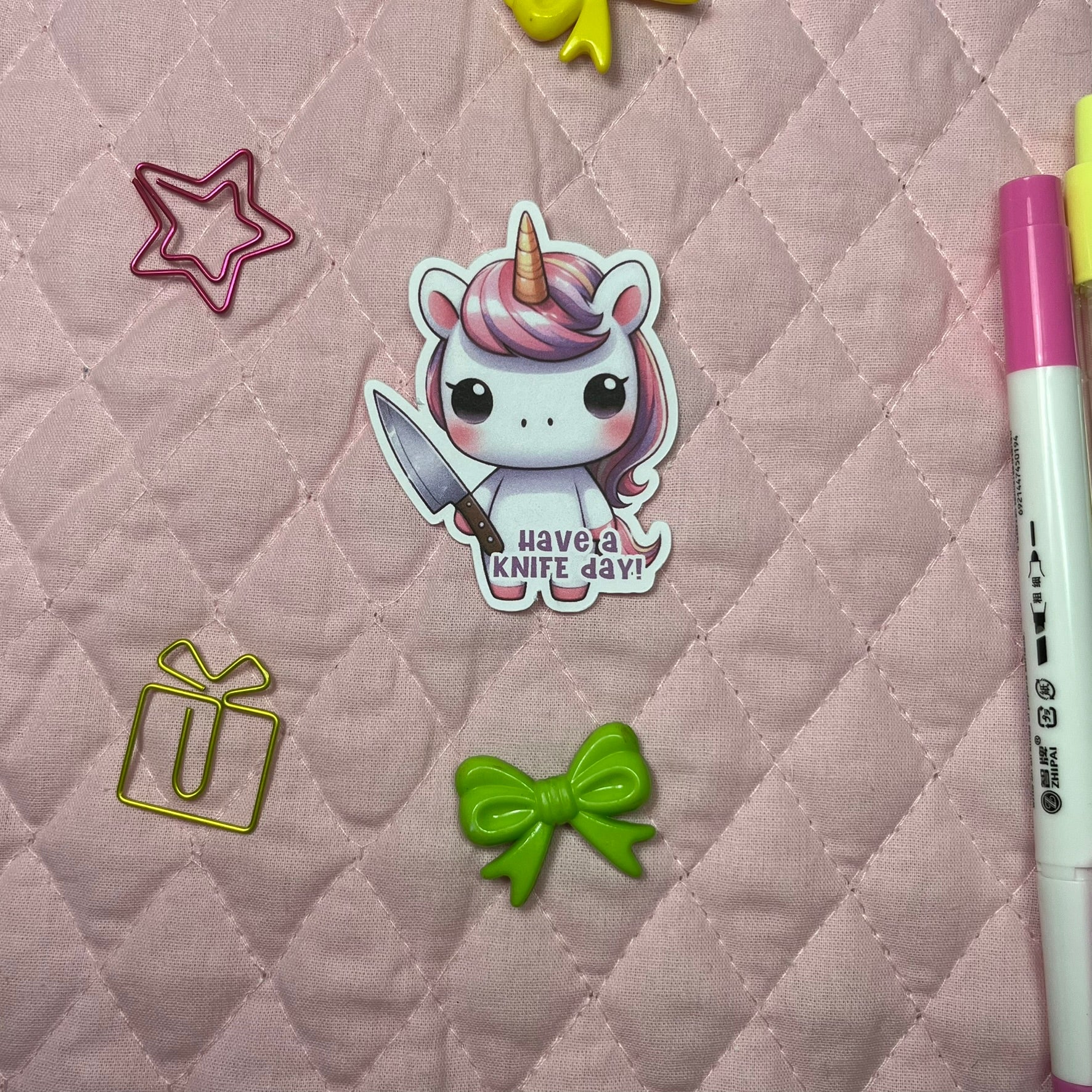 Add a touch of sass to your belongings with our Get Stabby weatherproof stickers. At 2.5 inches tall, these stickers are perfect for showing off your love for sarcastic humor. These weatherproof stickers are made with a glossy white sticker paper and for added protection a thick laminate overlay is placed onto the image.