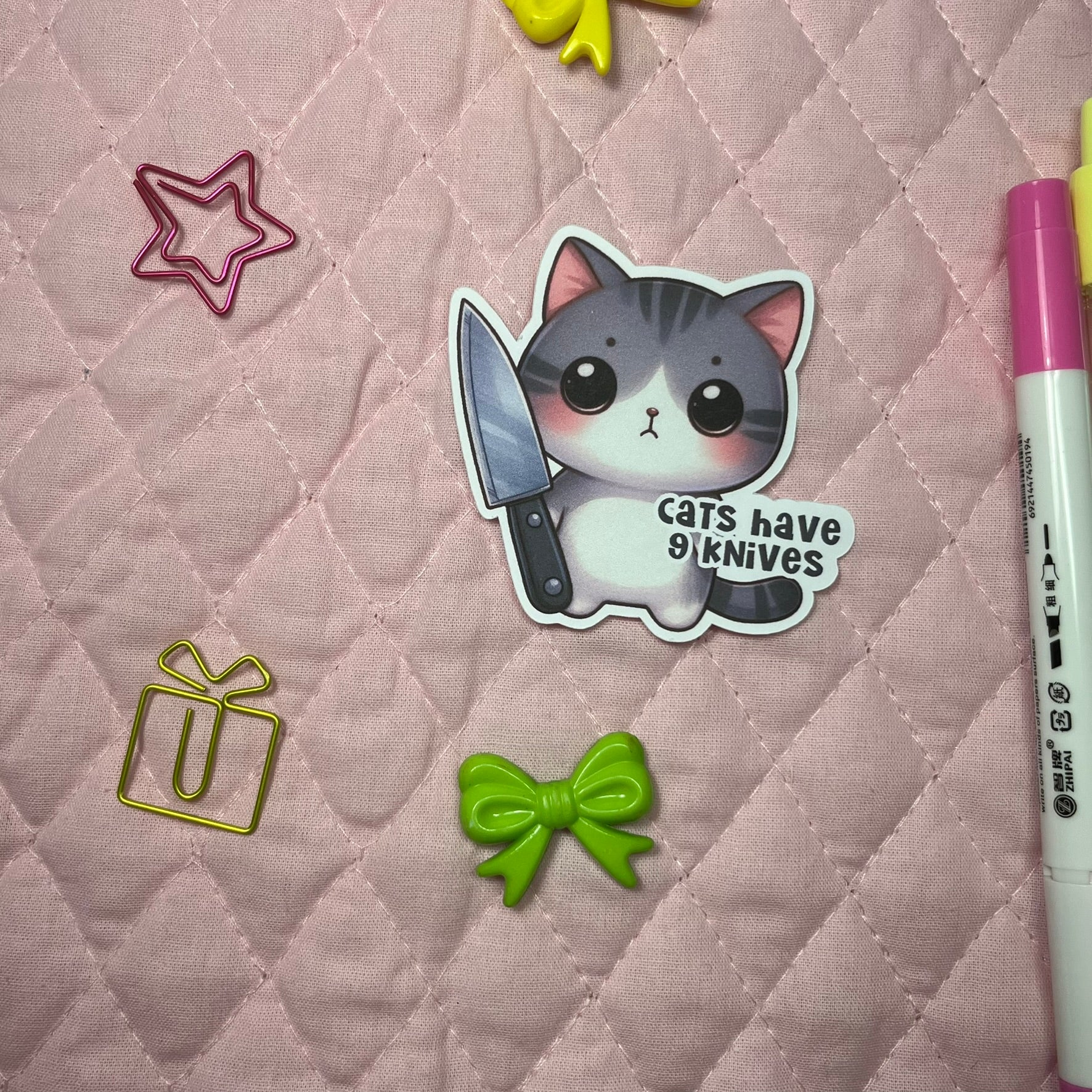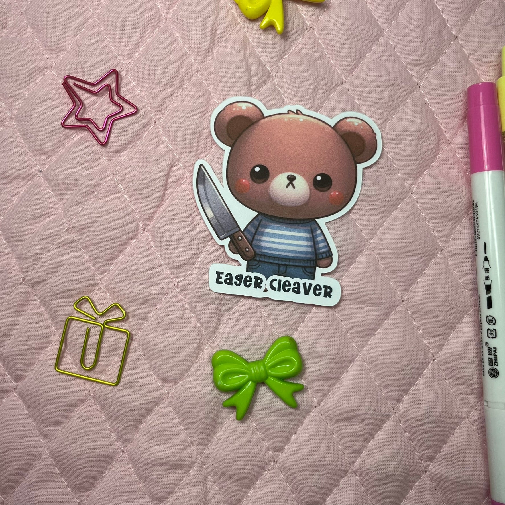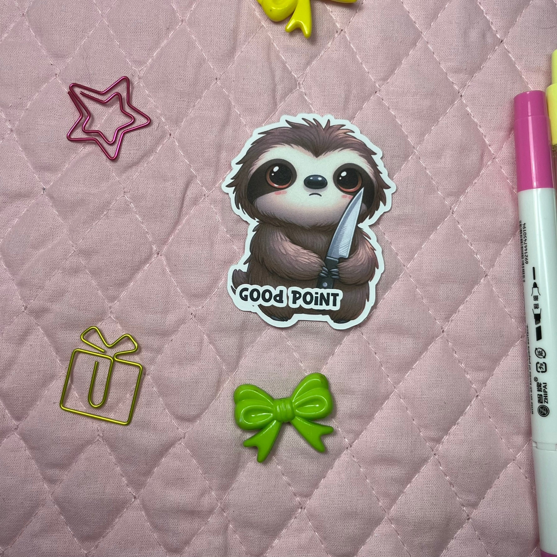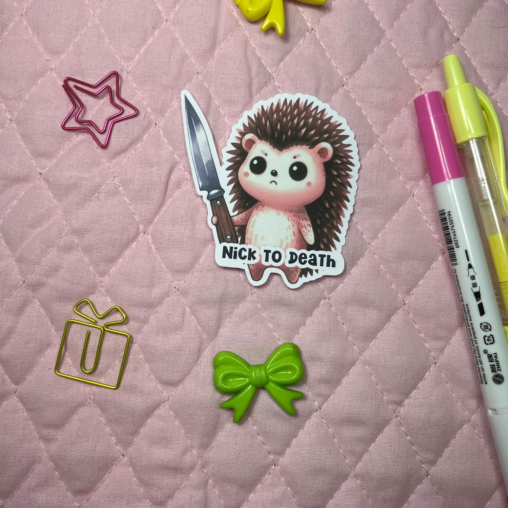 Add a touch of sass to your belongings with our Get Stabby weatherproof stickers. At 2.5 inches tall, these stickers are perfect for showing off your love for sarcastic humor. These weatherproof stickers are made with a glossy white sticker paper and for added protection a thick laminate overlay is placed onto the image.