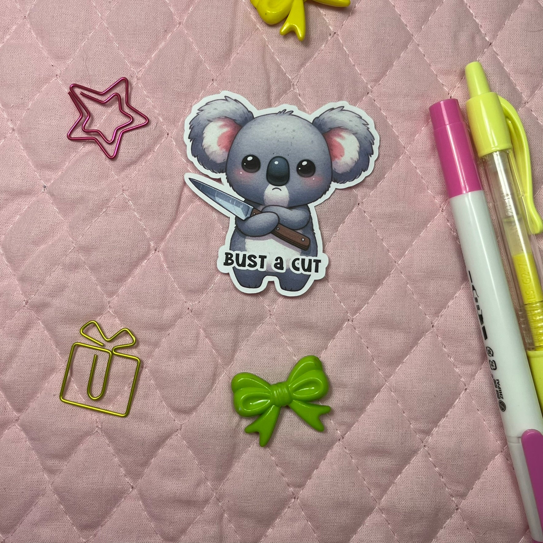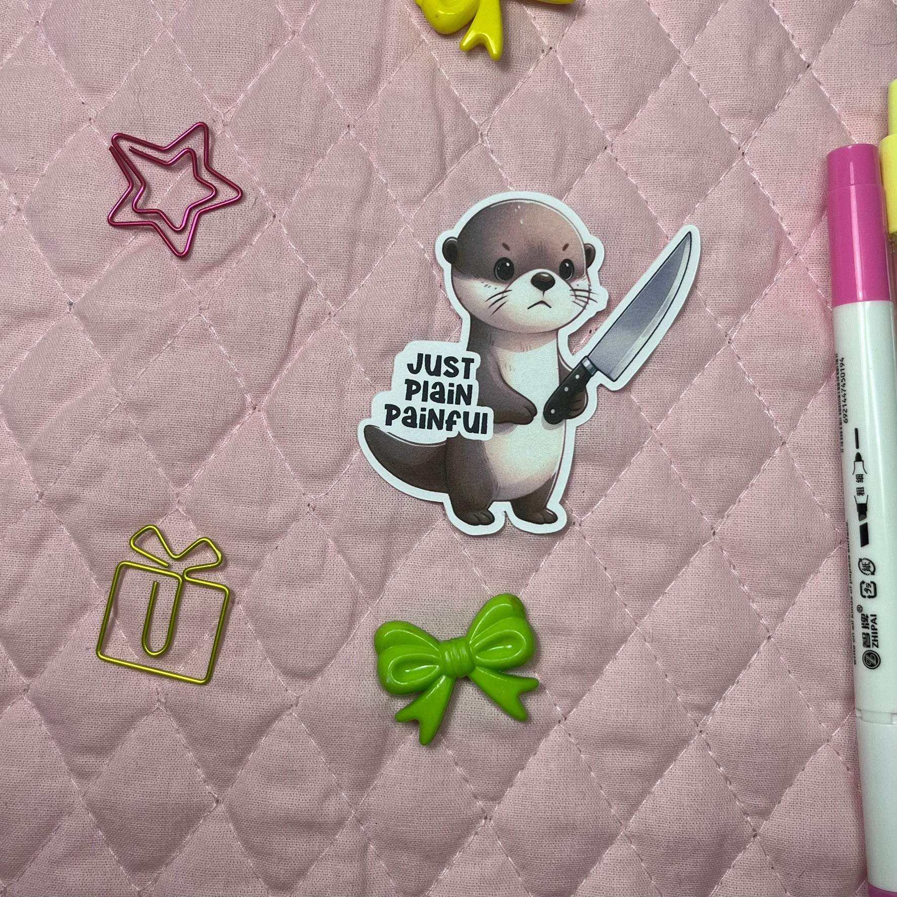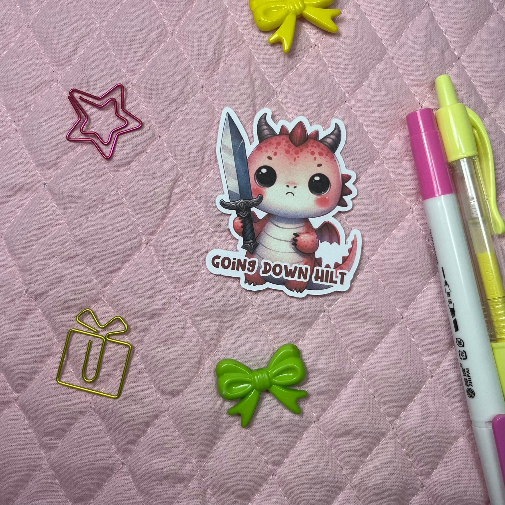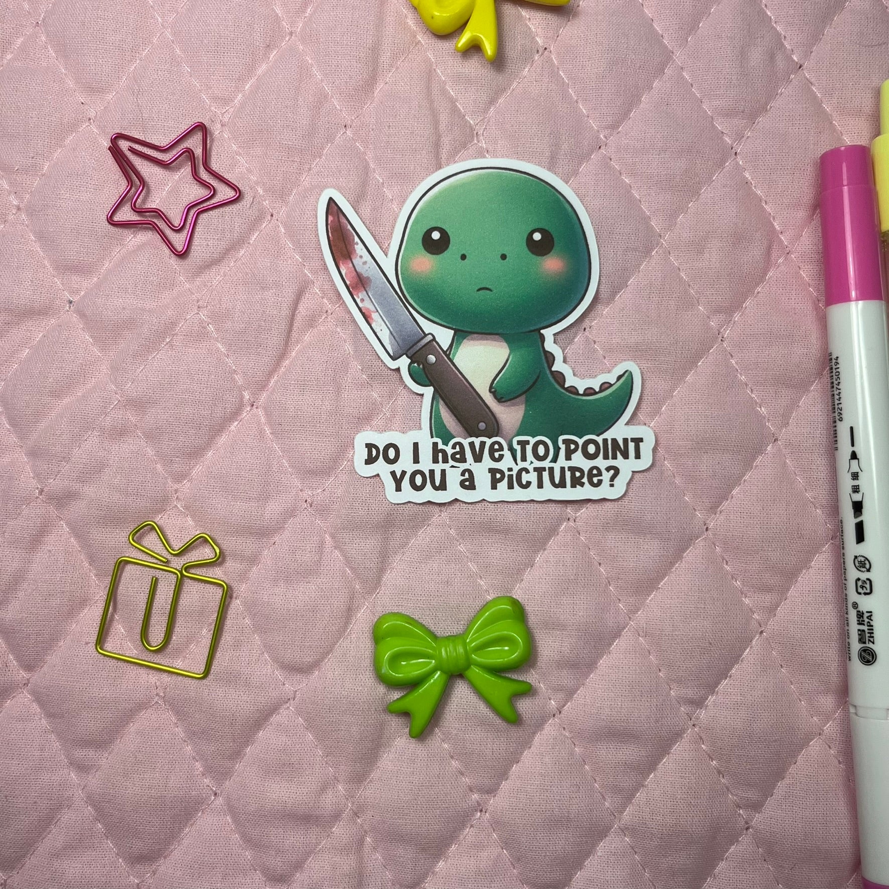 Add a touch of sass to your belongings with our Get Stabby weatherproof stickers. At 2.5 inches tall, these stickers are perfect for showing off your love for sarcastic humor. These weatherproof stickers are made with a glossy white sticker paper and for added protection a thick laminate overlay is placed onto the image.