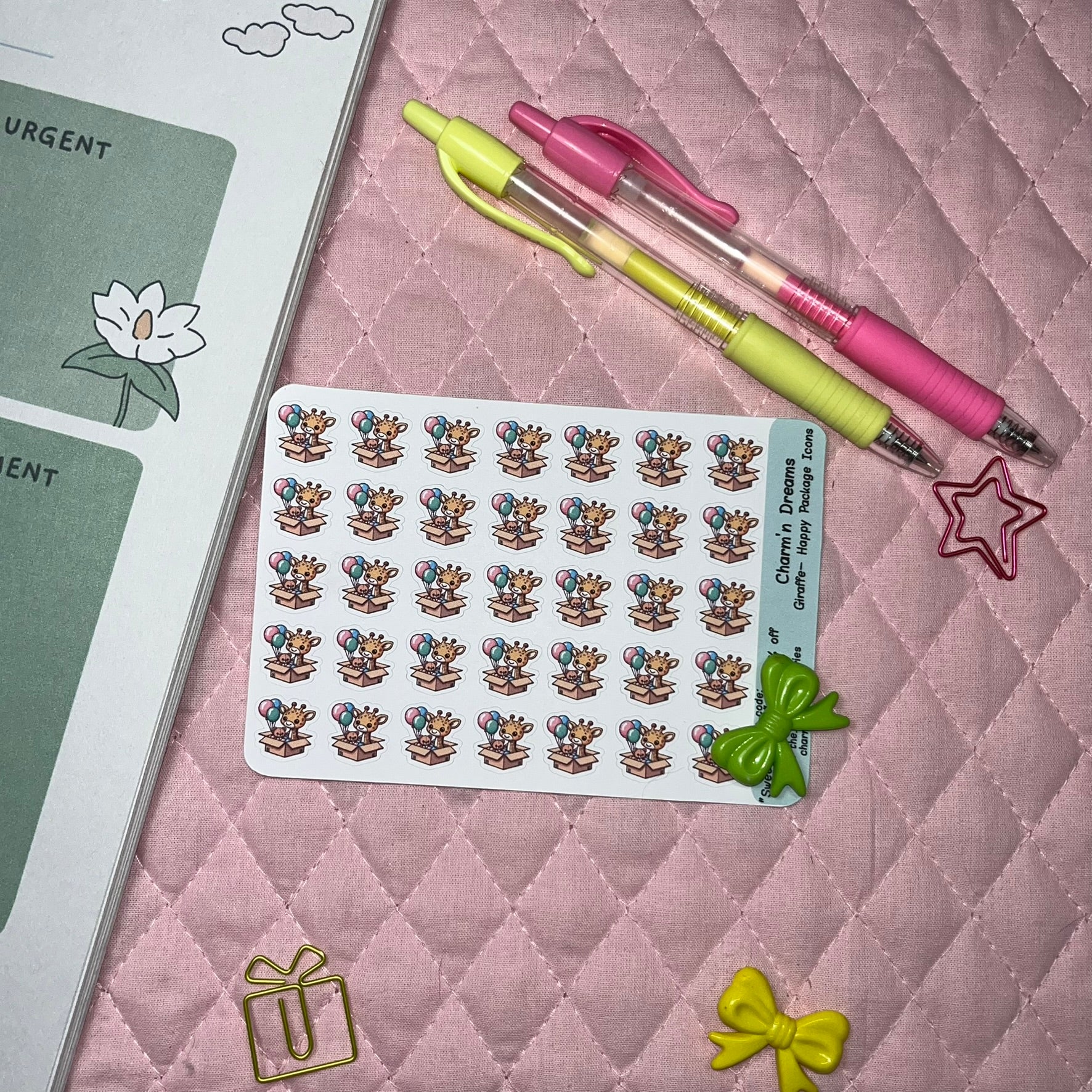 Make planning and journaling more fun with these adorable Giraffe Happy Package Icon Planner Stickers! These cute animal icons are perfect for adding a touch of cuteness to your planner or journal. Stay organized and add a playful touch to your daily tasks with these stickers.