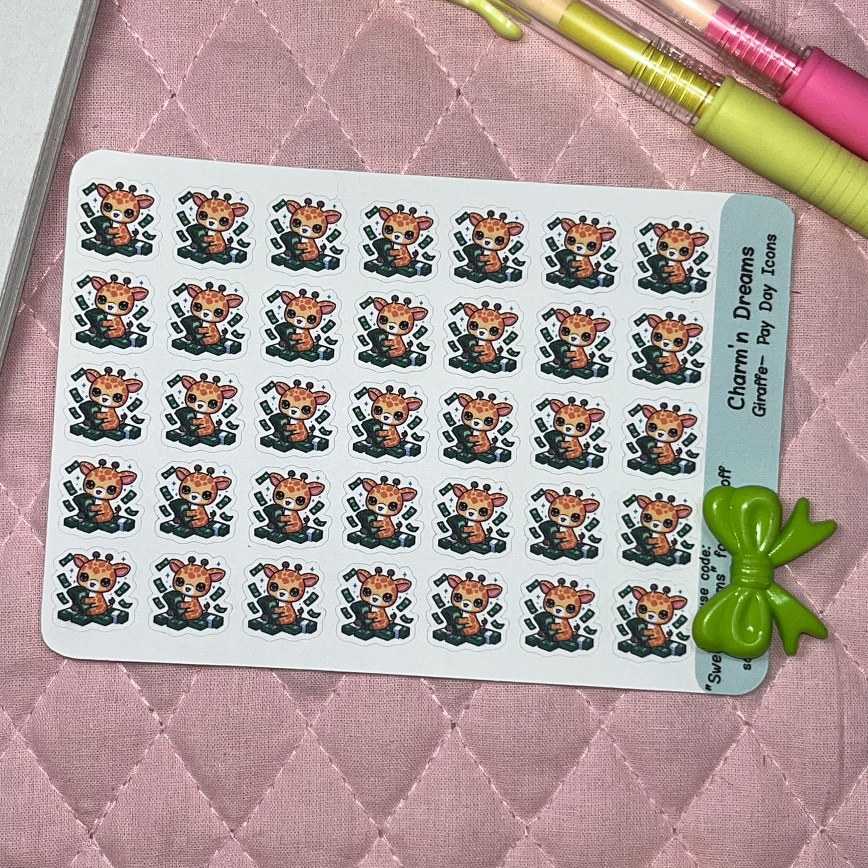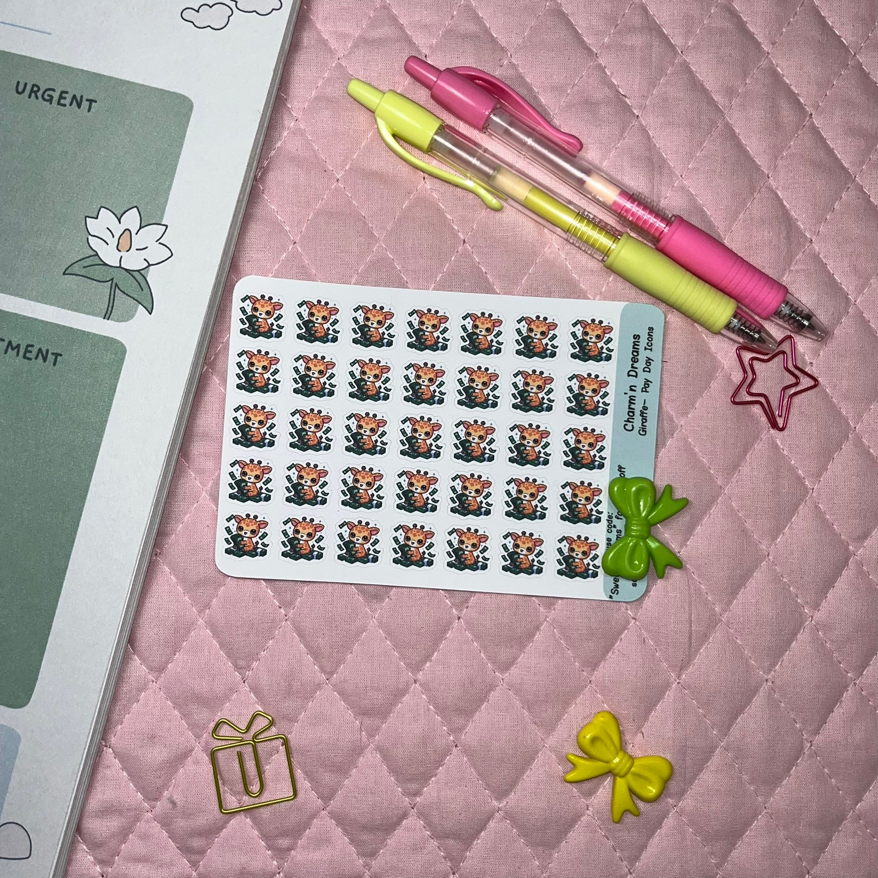 Make planning and journaling more fun with these adorable Giraffe Pay Day Finance Icon Planner Stickers! These cute animal icons are perfect for adding a touch of cuteness to your planner or journal. Stay organized and add a playful touch to your daily tasks with these stickers.