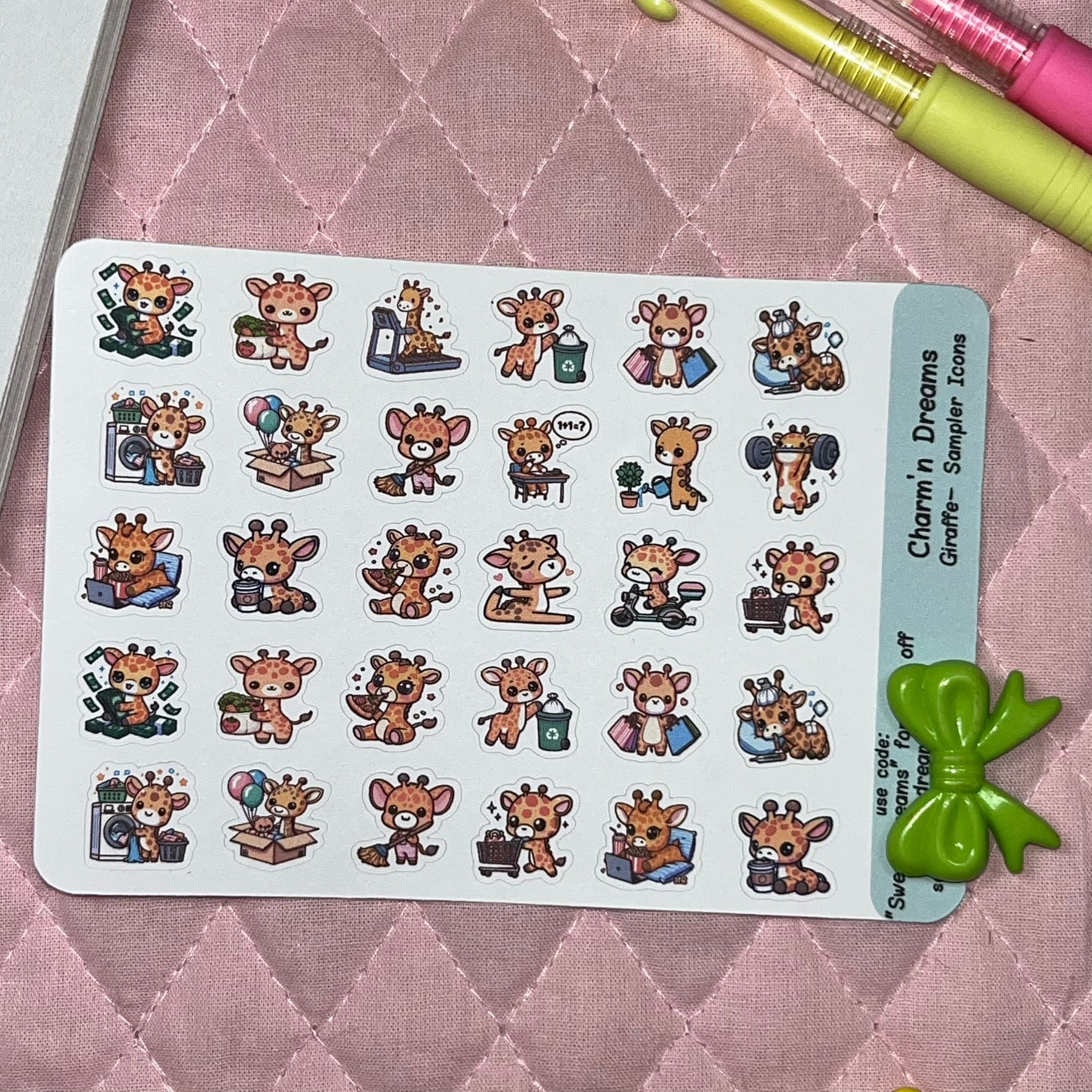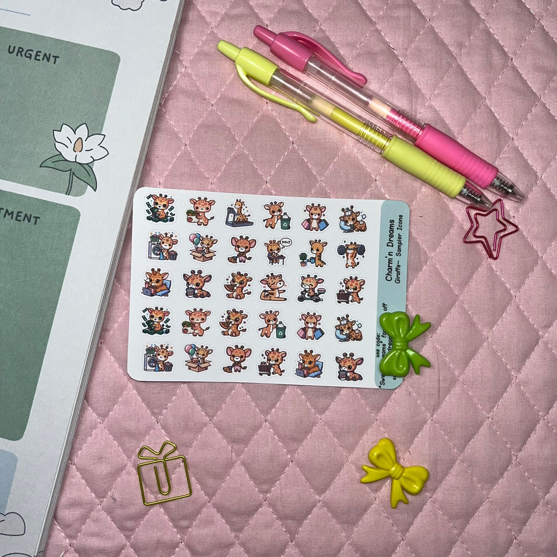 Make planning and journaling more fun with these adorable Giraffe Sampler Icon Planner Stickers! These cute animal icons are perfect for adding a touch of cuteness to your planner or journal. Stay organized and add a playful touch to your daily tasks with these stickers.