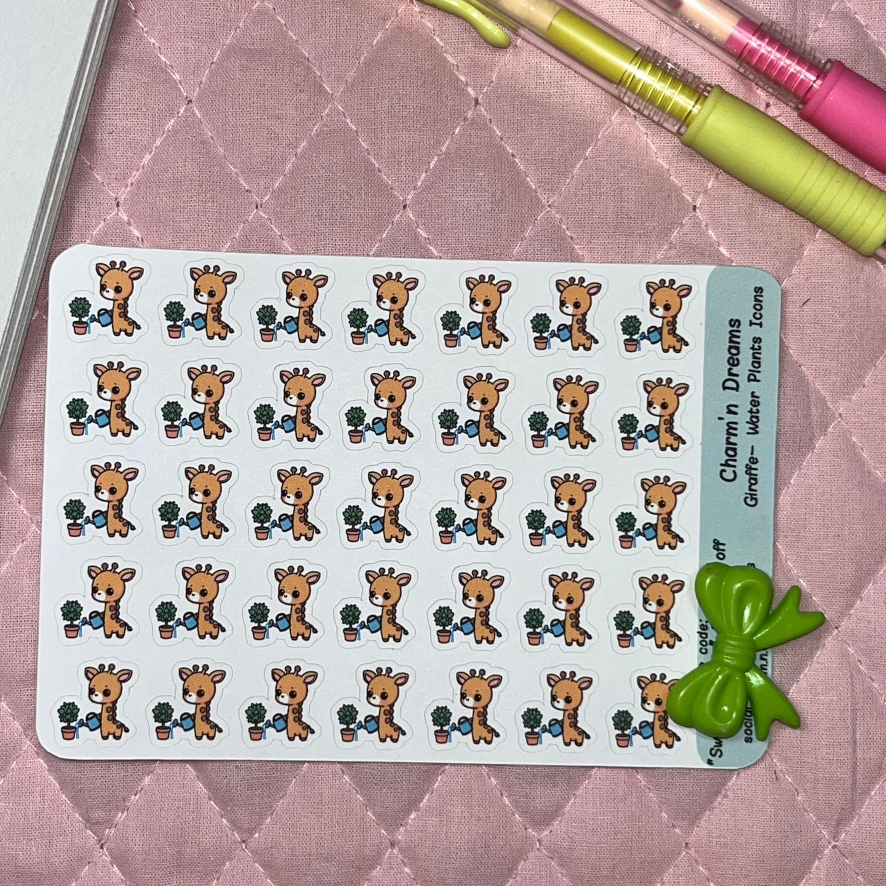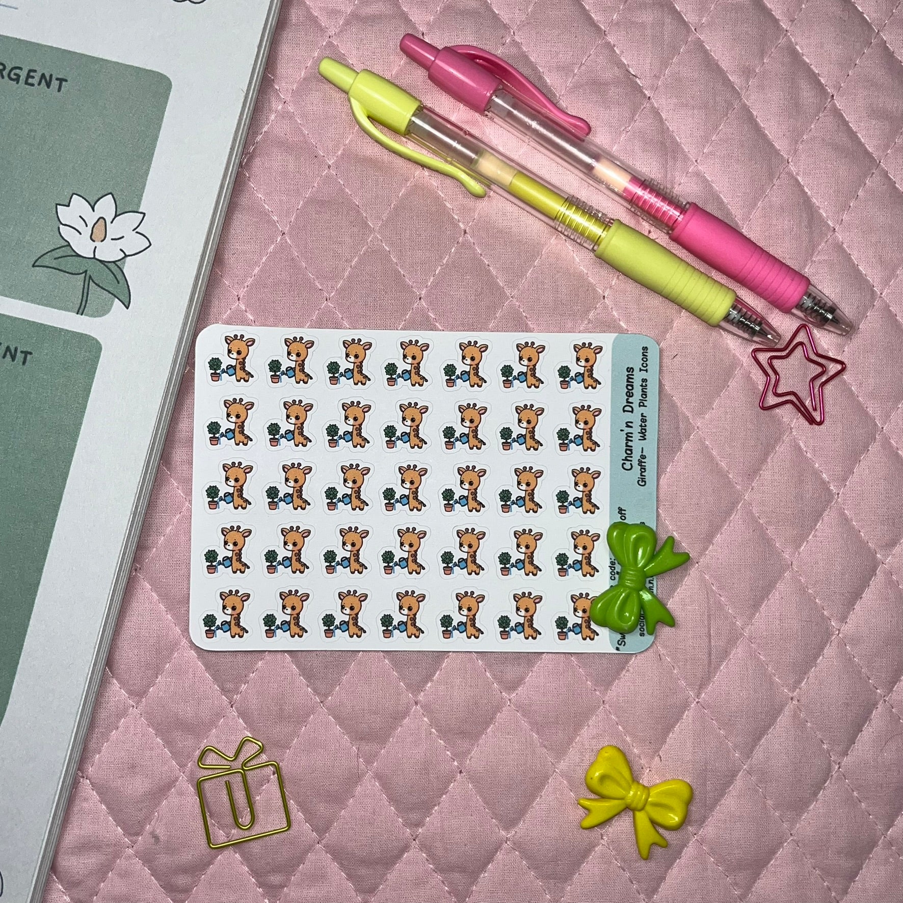 Make planning and journaling more fun with these adorable Giraffe Water Plants Icon Planner Stickers! These cute animal icons are perfect for adding a touch of cuteness to your planner or journal. Stay organized and add a playful touch to your daily tasks with these stickers.
