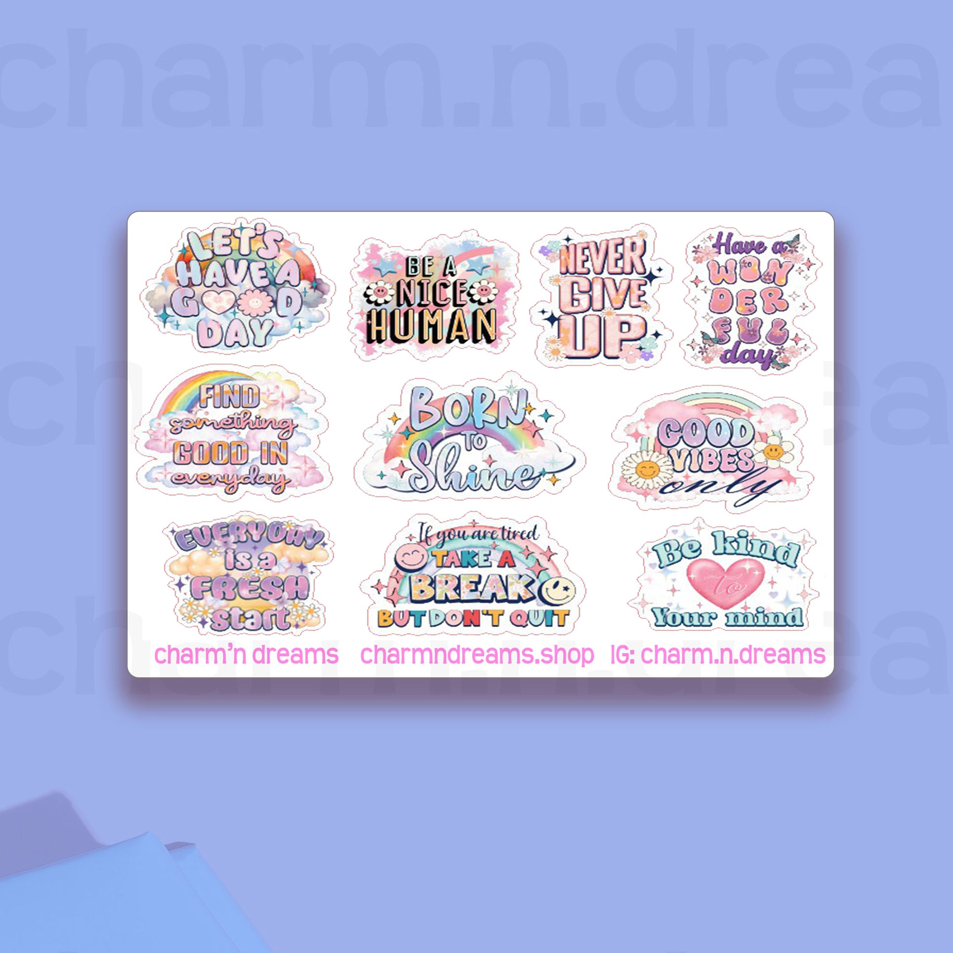 Add some good vibes to your planner with these cute and motivating stickers! Each one is made with permanent matte paper, so you can keep going all month long. Spread love and positivity with every task you accomplish. Stick on, and stay motivated! π
