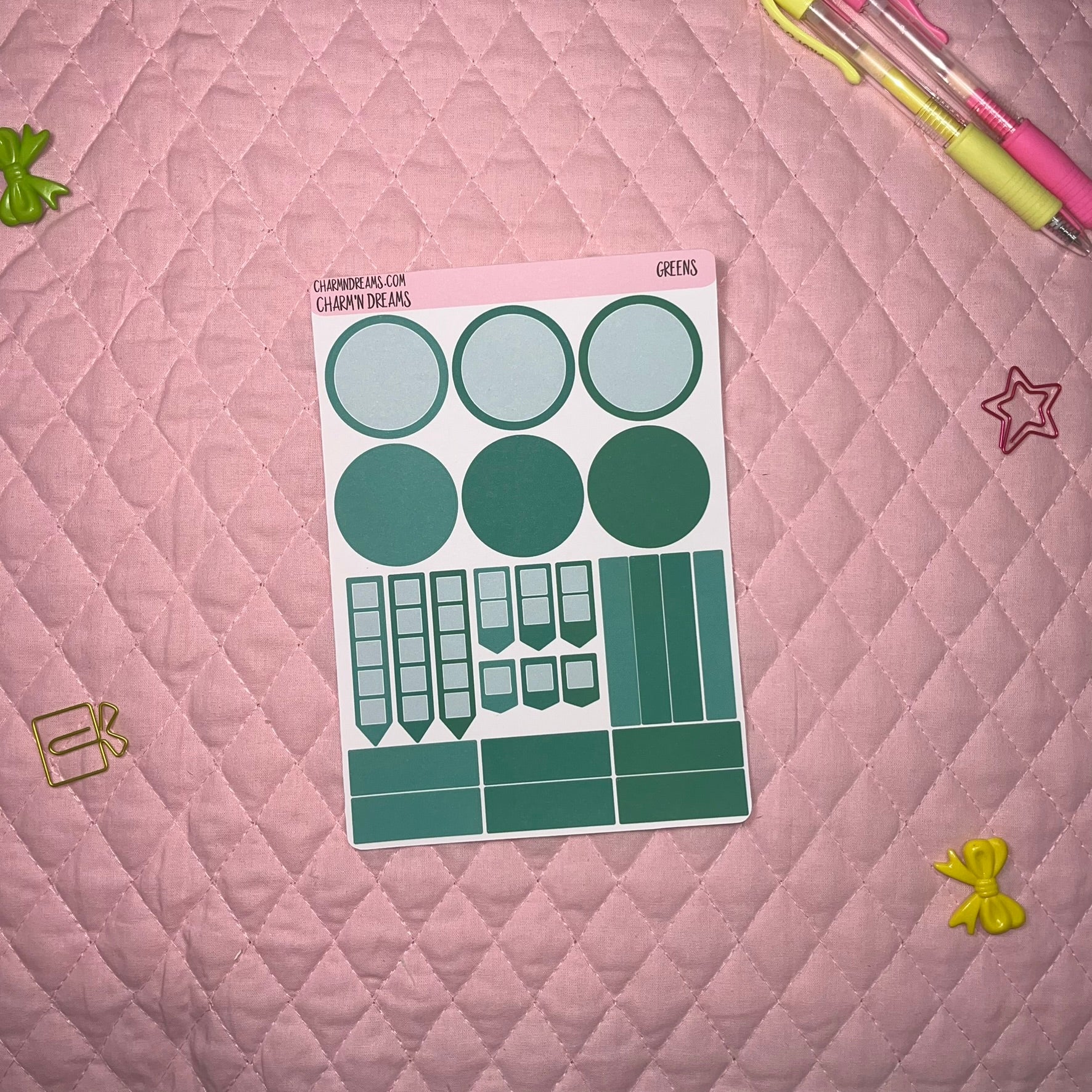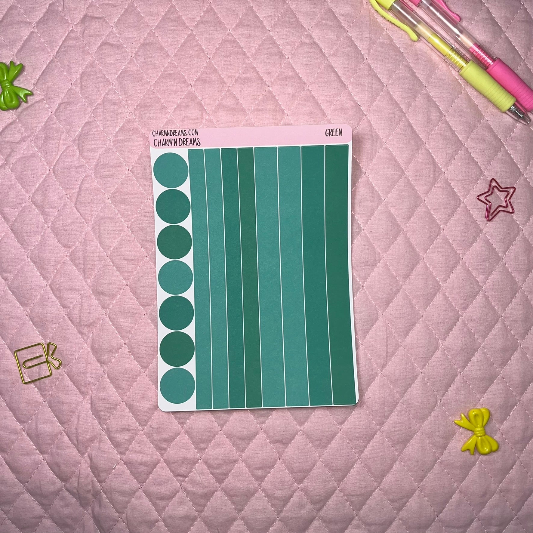Our Green Planner Sticker Kit is the perfect stand alone or accent sticker kit! Mix and Match your favorite colors or dedicate solid colors to color code your projects or lifestyle. Perfect for journaling and bujo lovers.