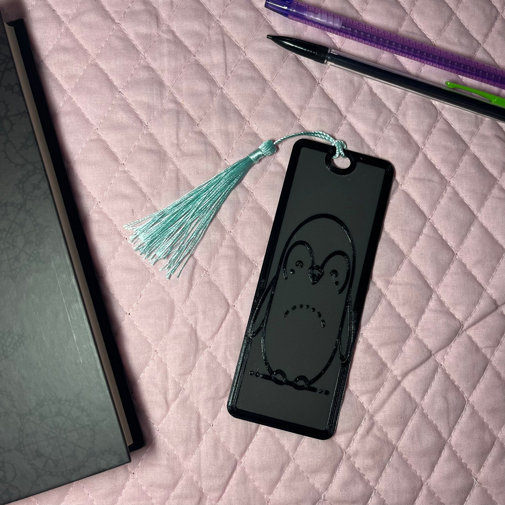 A Happy Penguin Bookmark 3d printed (PETG) Bookmark! The 3d printed file is created and printed in house for a fun and meaningful product.