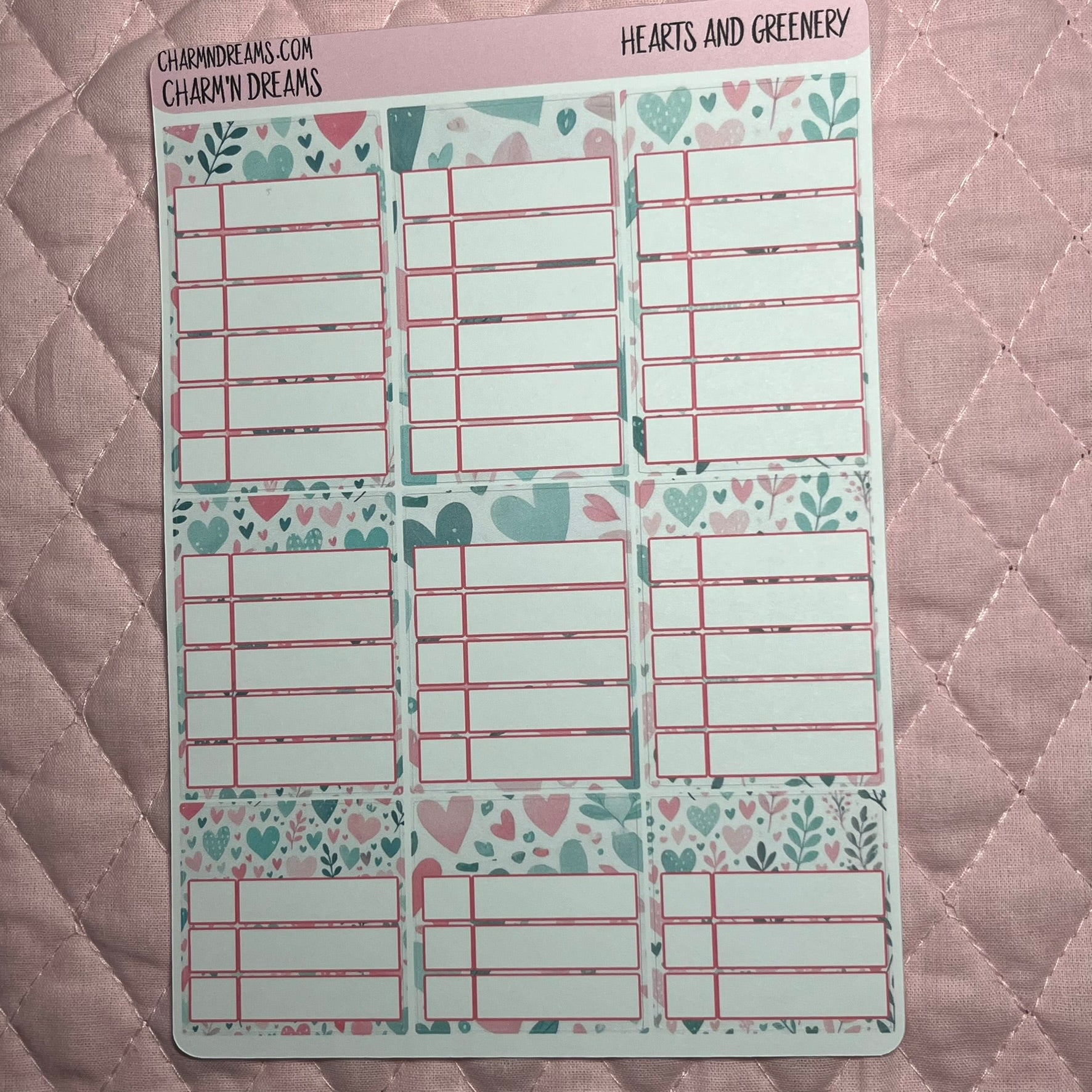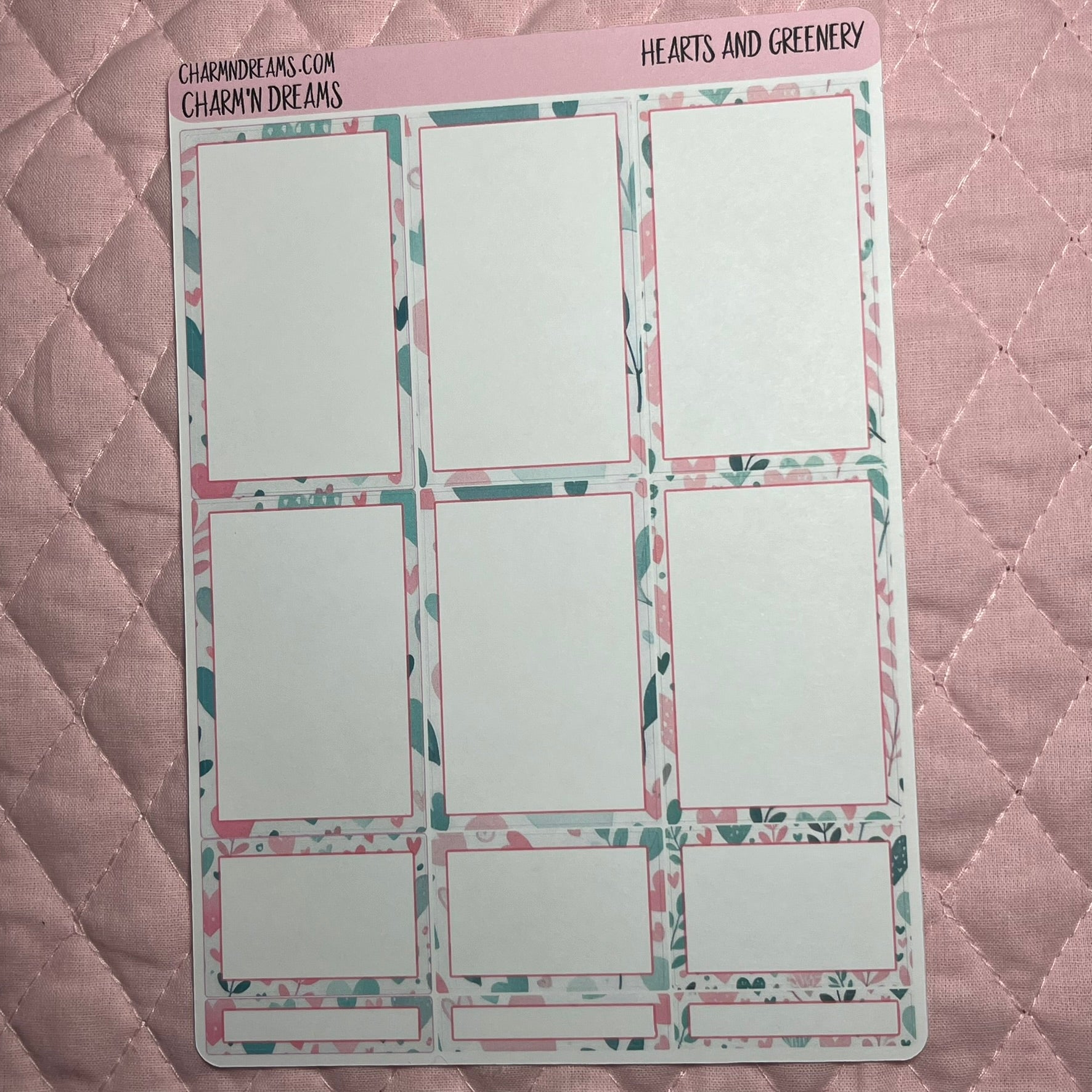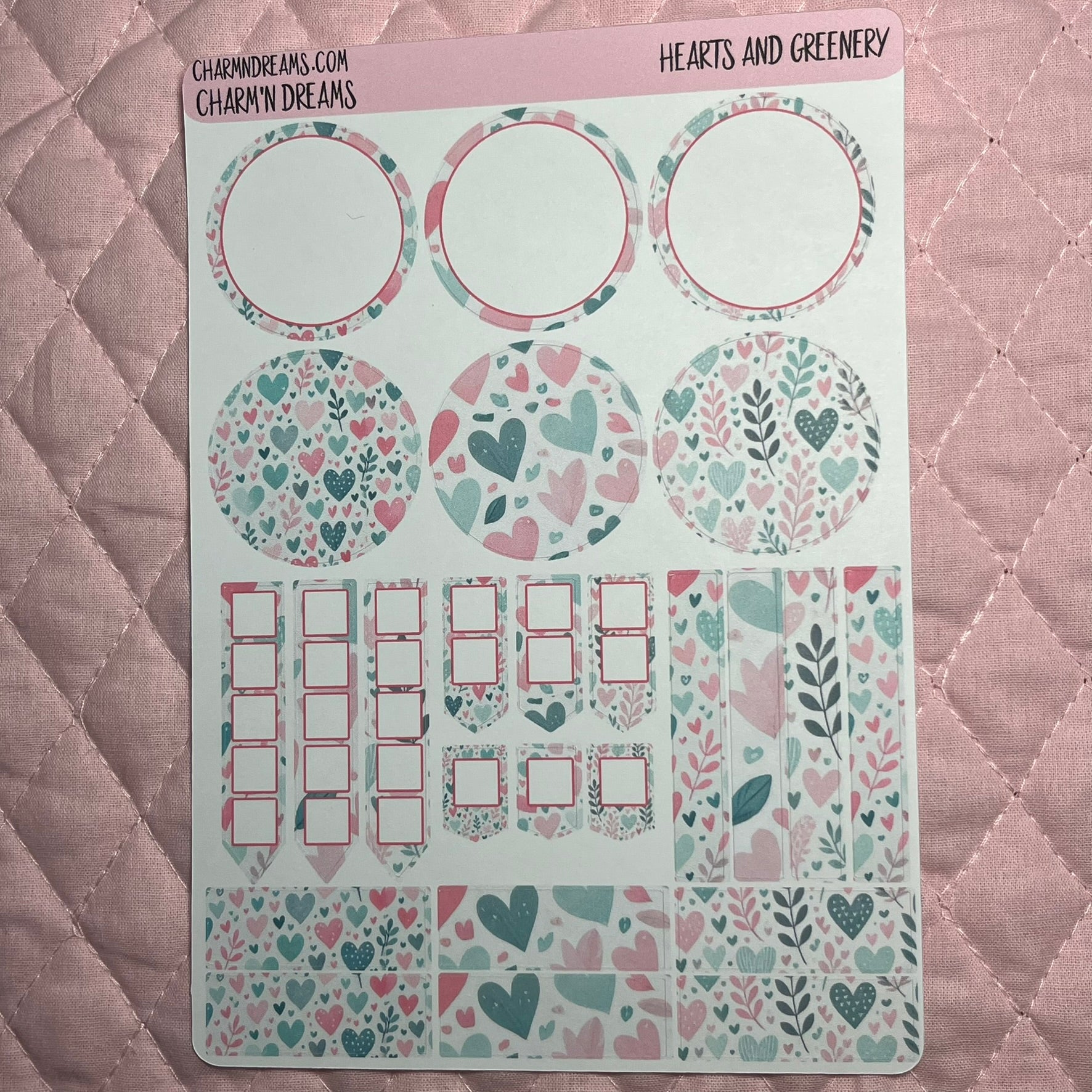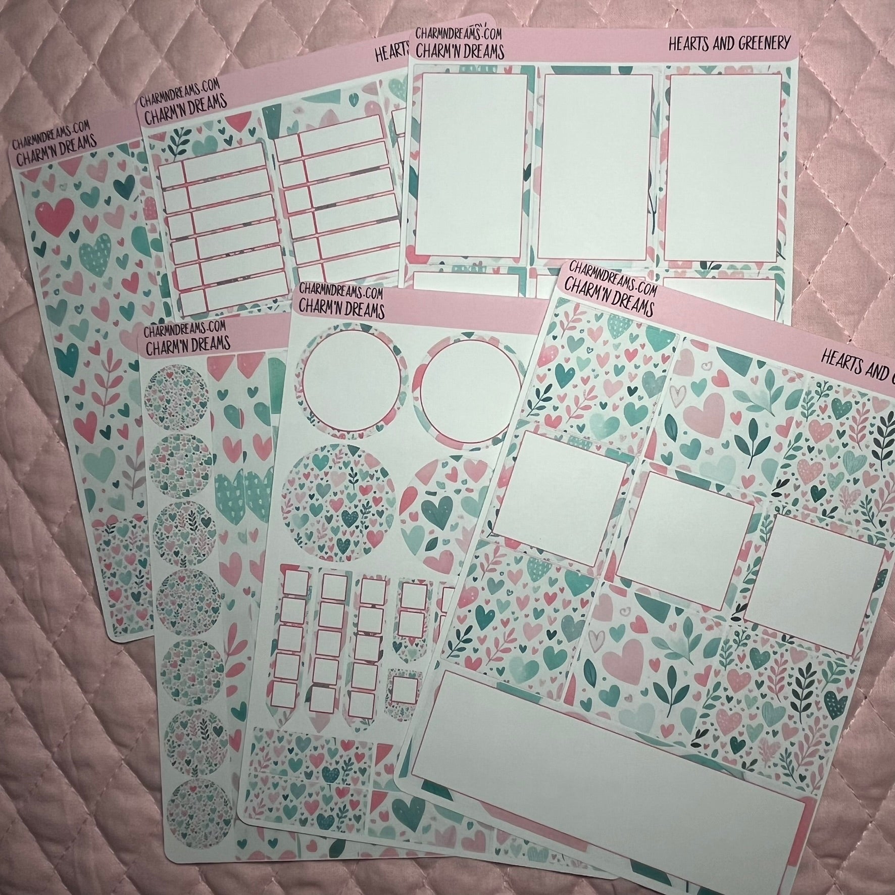 This sticker kit is perfect for all your organization needs. With a maximum size of 2.5" x 1.5", these permanent matte paper stickers are perfect for writing on and are made specifically for stationery and journaling projects. The kit includes 6 sticker sheets, ideal for classic happy planner vertical spreads and other planners, journals, and notebooks. Get organized and add some hearts and greenery to your life with this sticker kit.