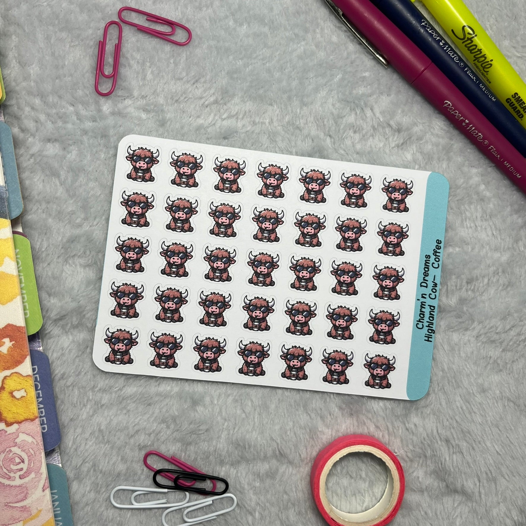 Add a fun twist to your planner or journal with these Highland Cow Icon Planner Stickers! Brighten up your pages and stay on top of your goals with a playful touch of countryside cuteness.