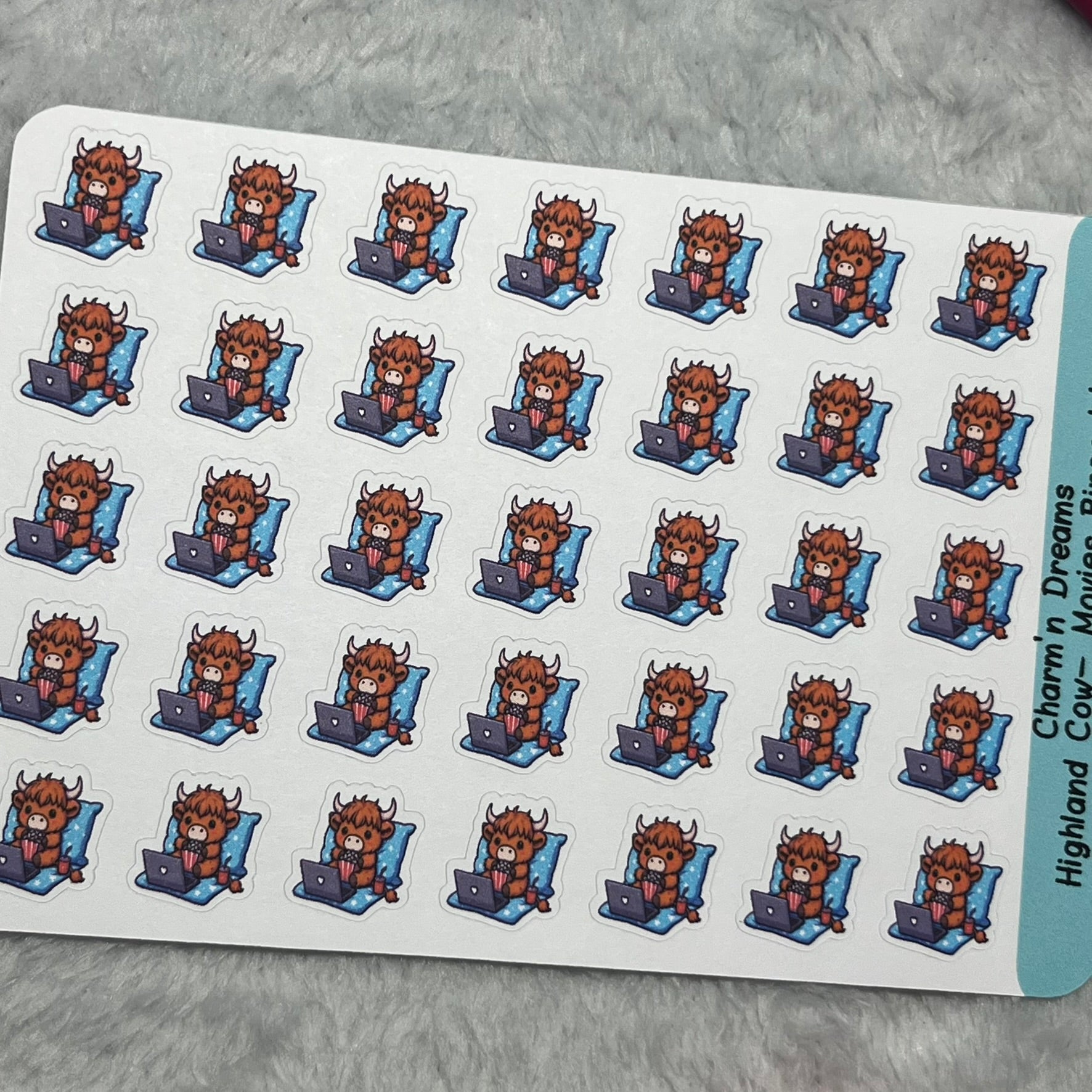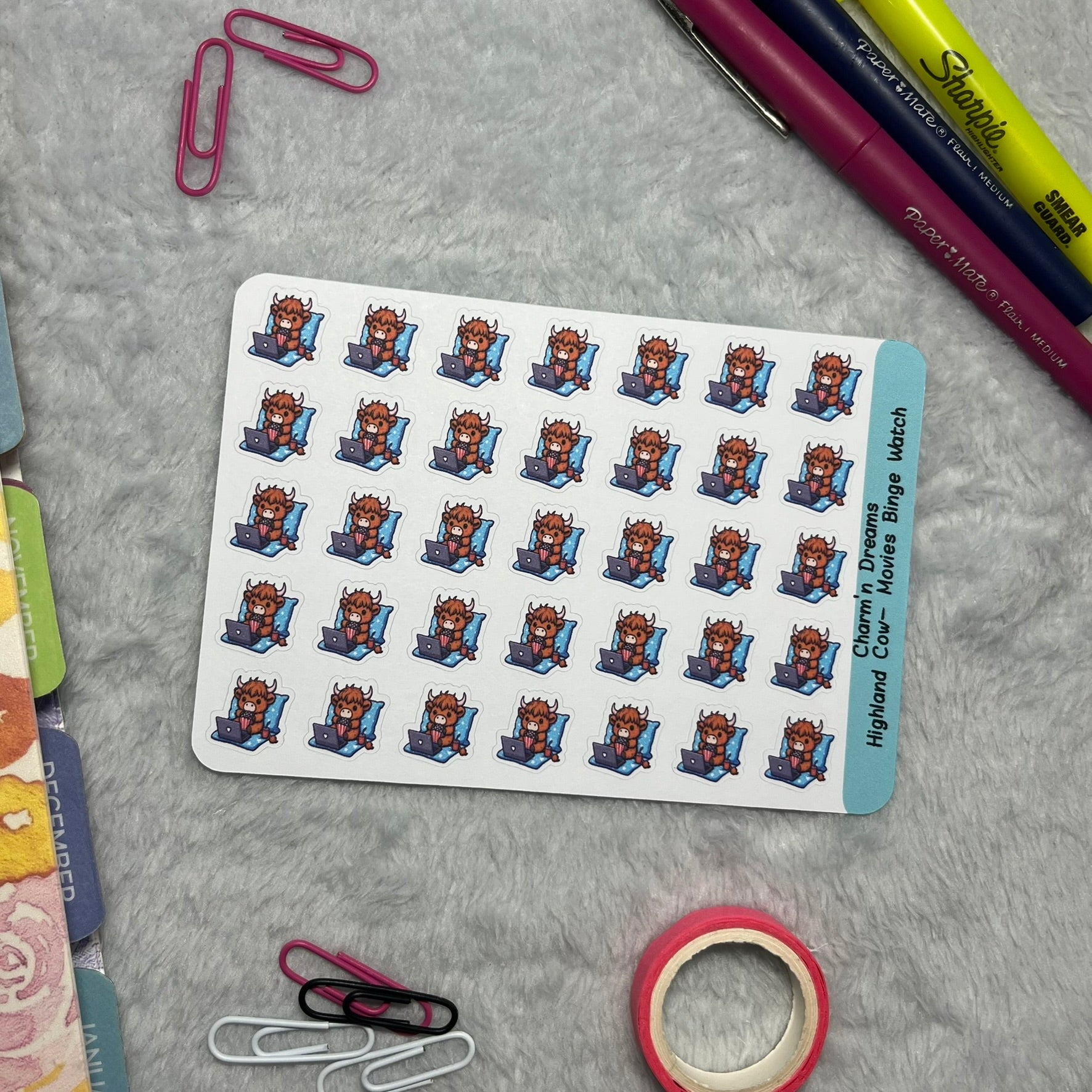 Highland Cow Movies/ Binge Watch Icon Planner Stickers