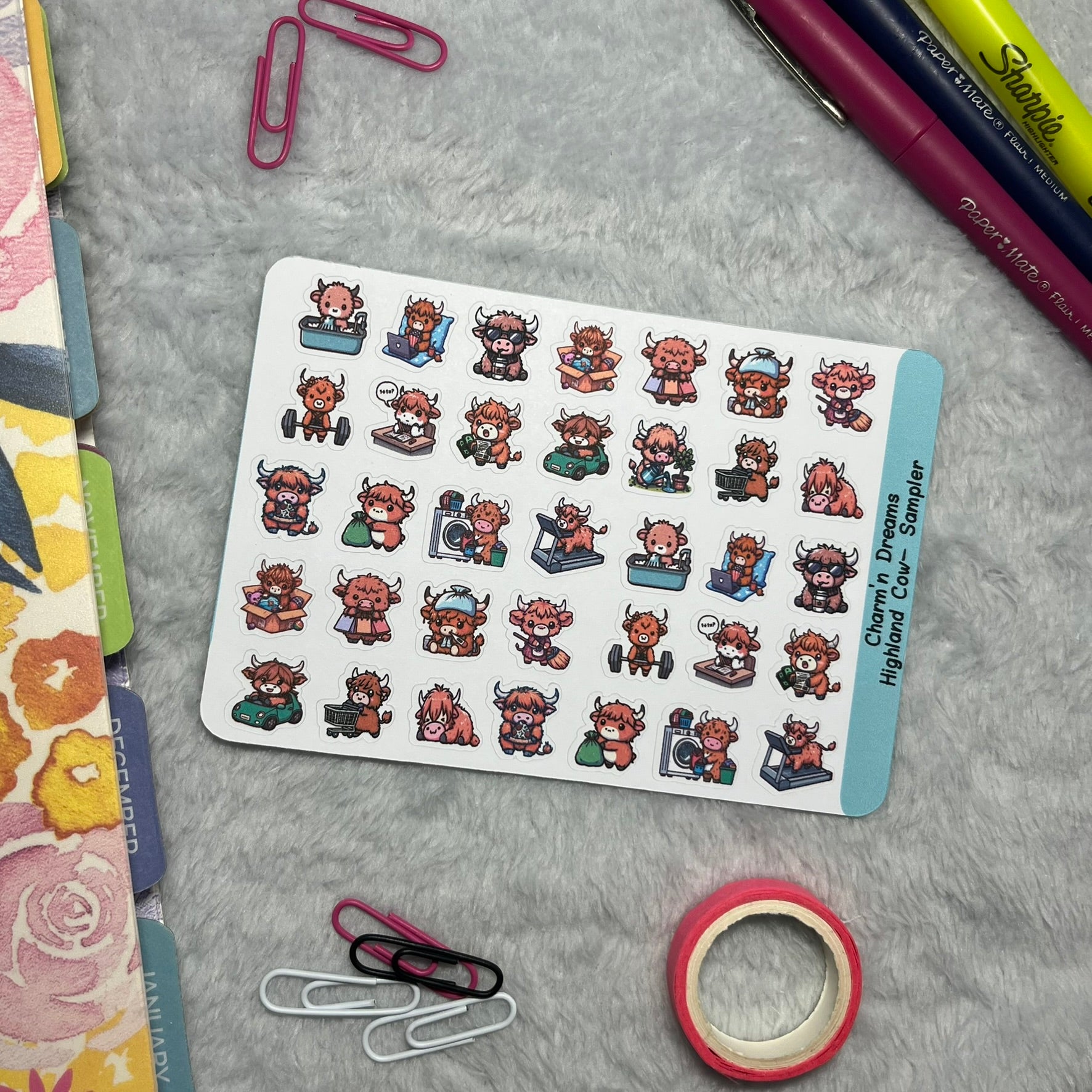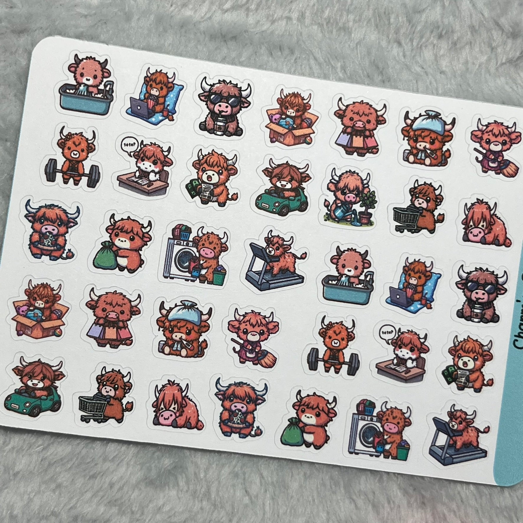 Add a fun twist to your planner or journal with these Highland Cow Icon Planner Stickers! Brighten up your pages and stay on top of your goals with a playful touch of countryside cuteness.