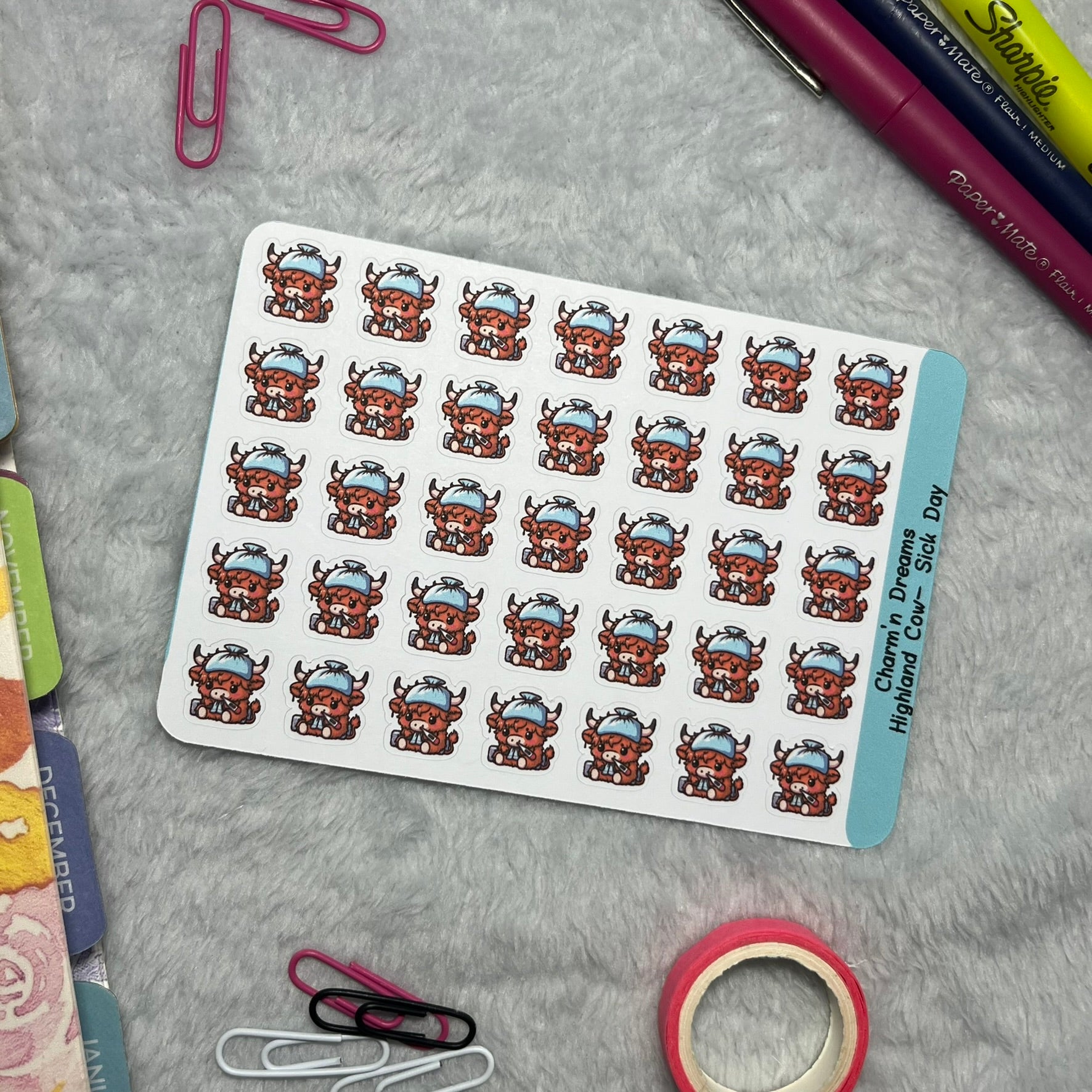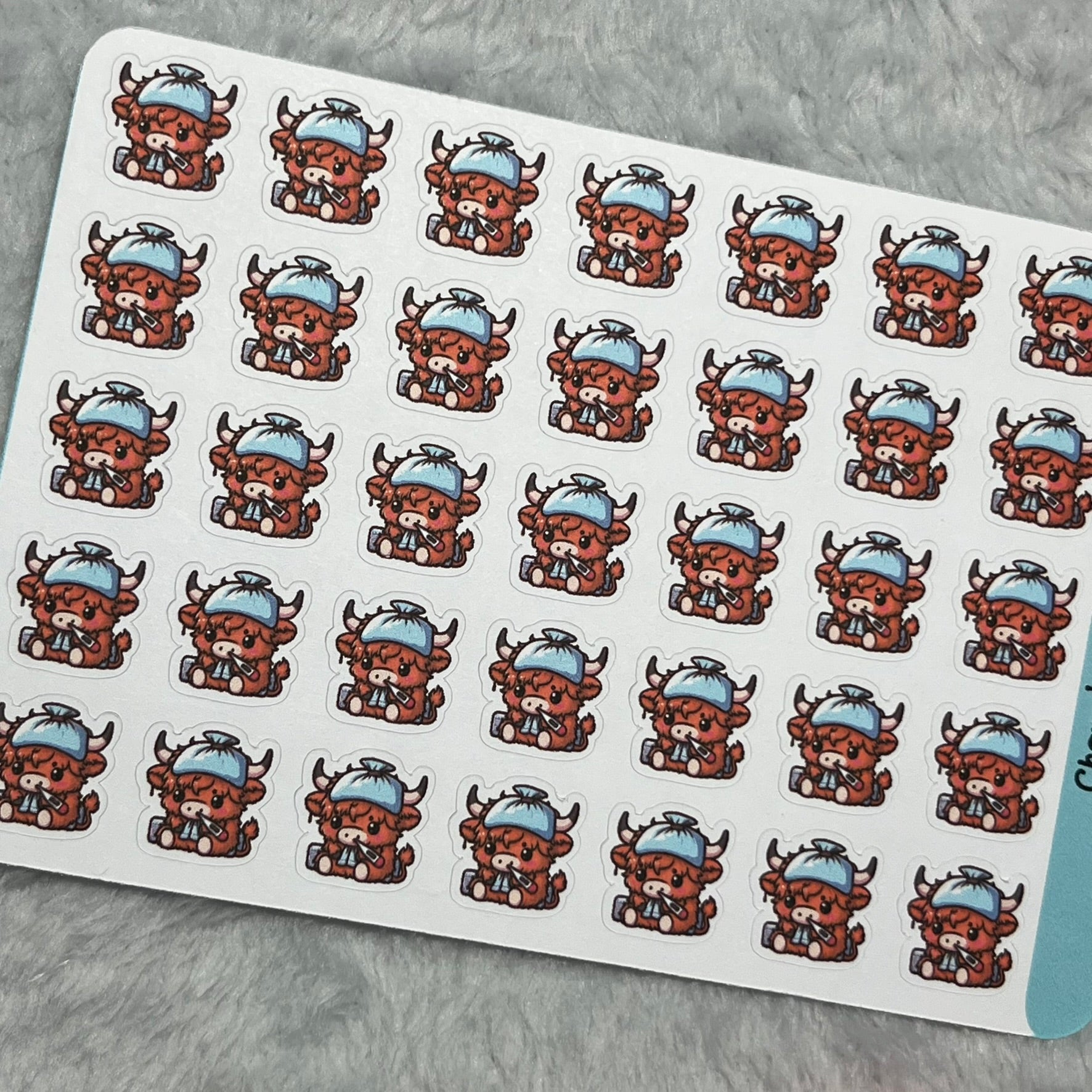 Highland Cow Sick Day Icon Planner Stickers