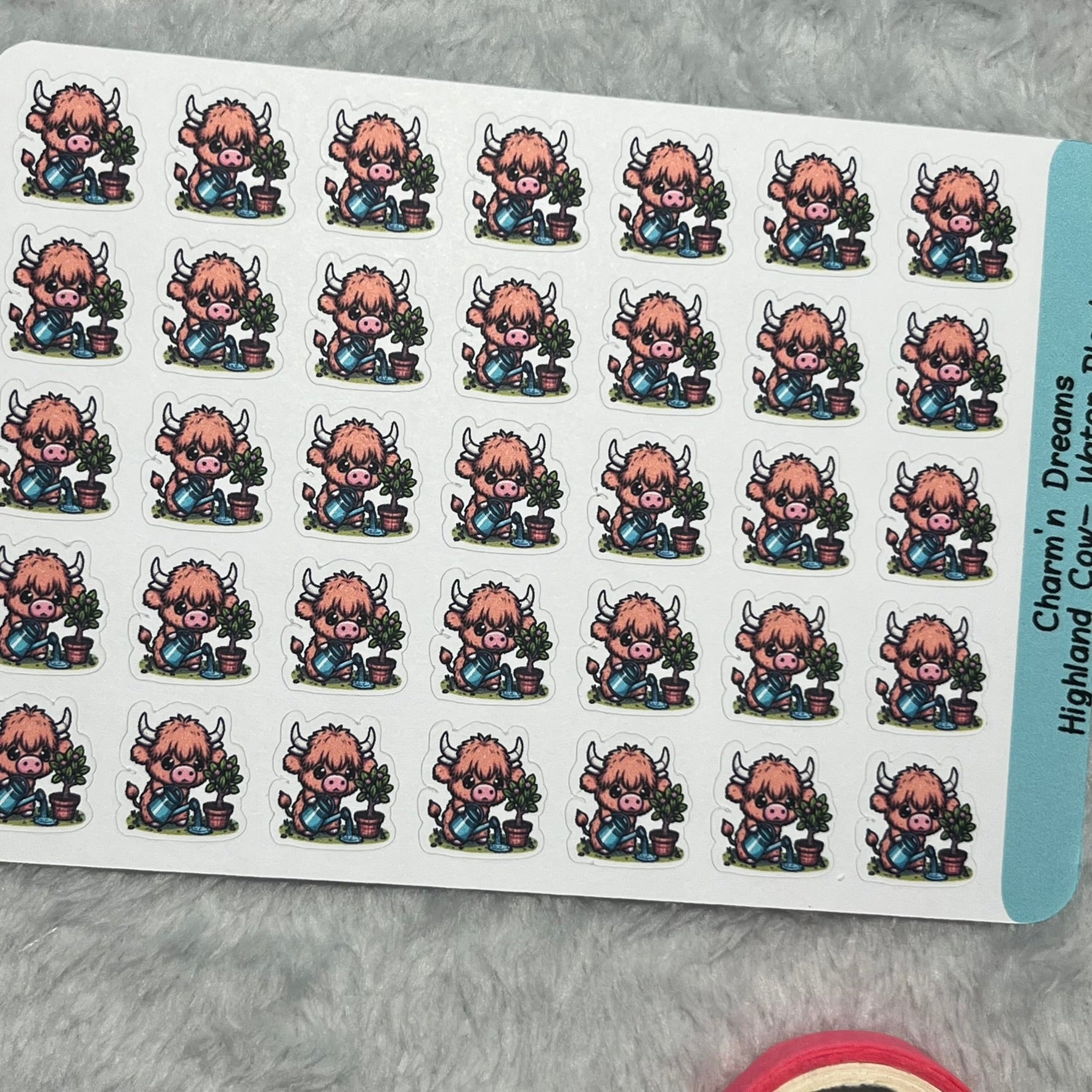 Highland Cow Water Plants Icon Planner Stickers