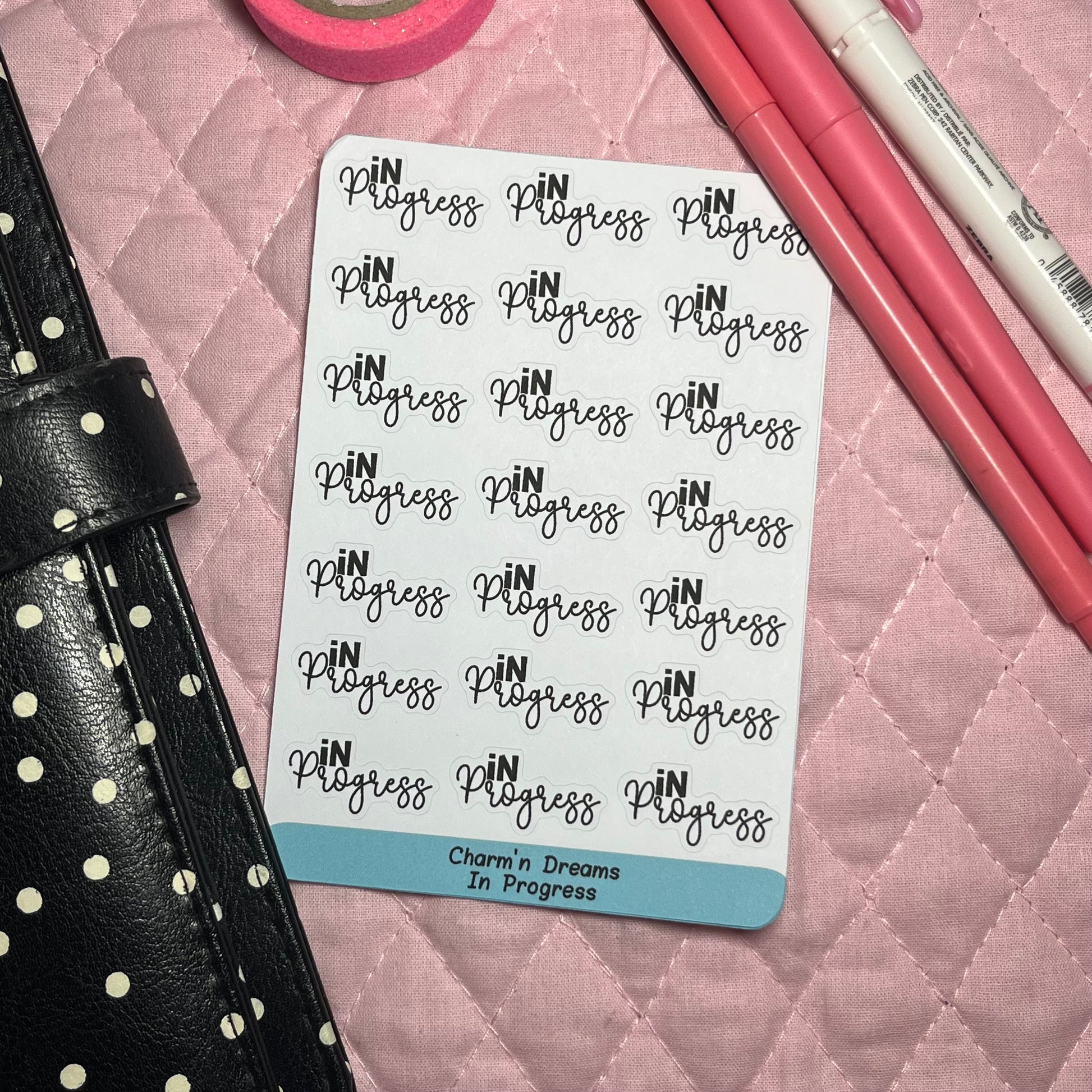 Introducing In Progress Functional Planner Stickers! Made with permanent matte sticker paper, these stickers are perfect for tracking your progress in your journal or planner. Easily mark your achievements and stay motivated on your journey towards your goals. Stay organized and inspired with these functional stickers.