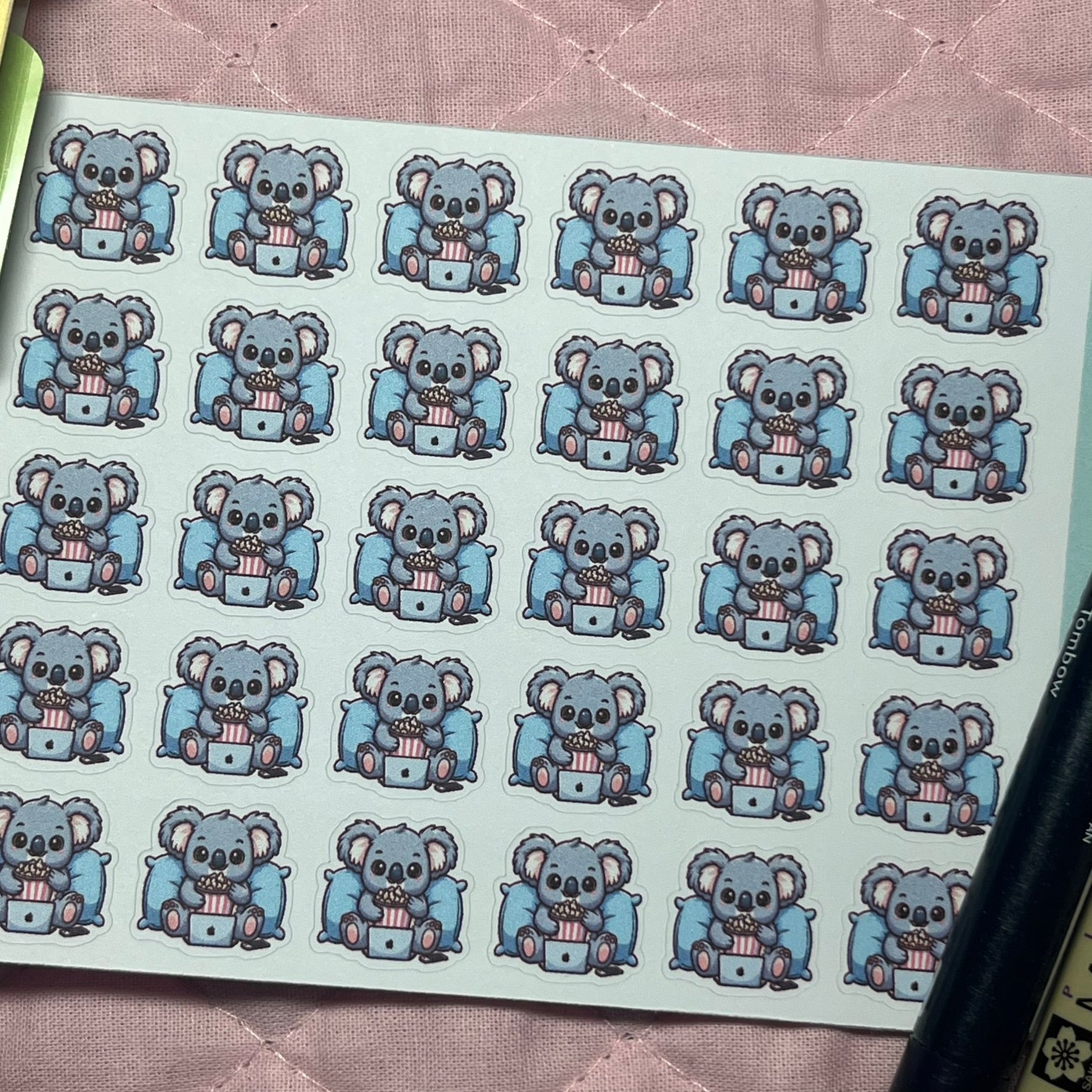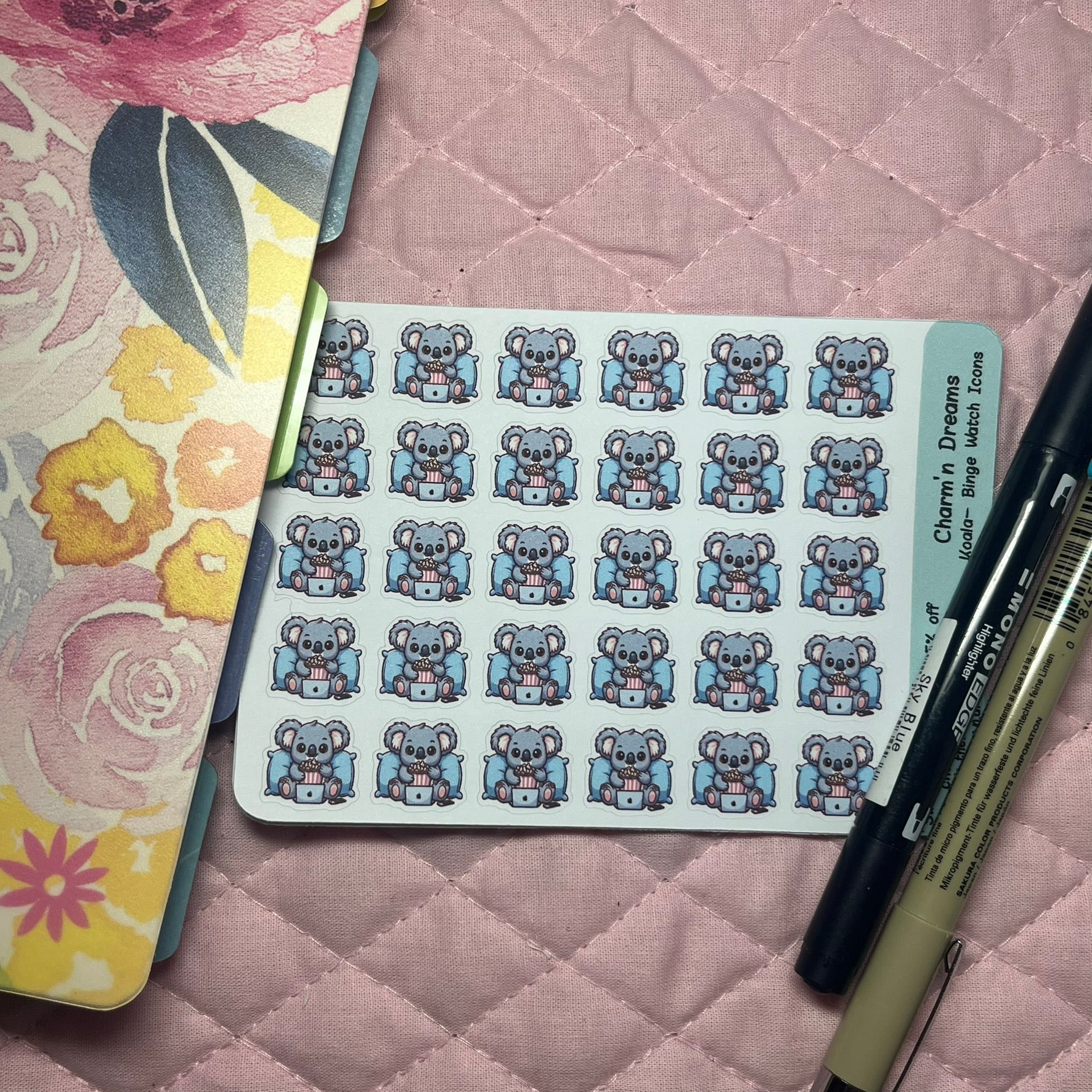 Introducing the Koala Binge Watch Icon Planner Stickers! Made with permanent matte sticker paper, these stickers are perfect for adding a fun touch to your journals, planners, and stationery. Please note that they are not waterproof or water resistant. Get organized and have some fun with these adorable stickers.