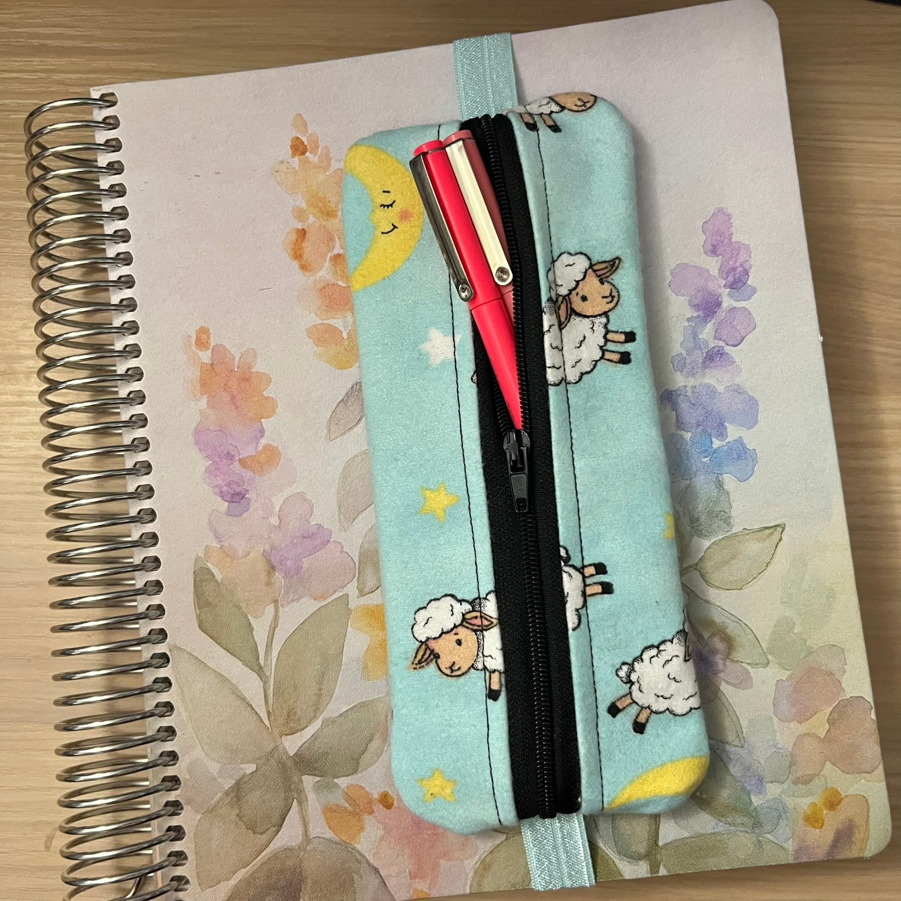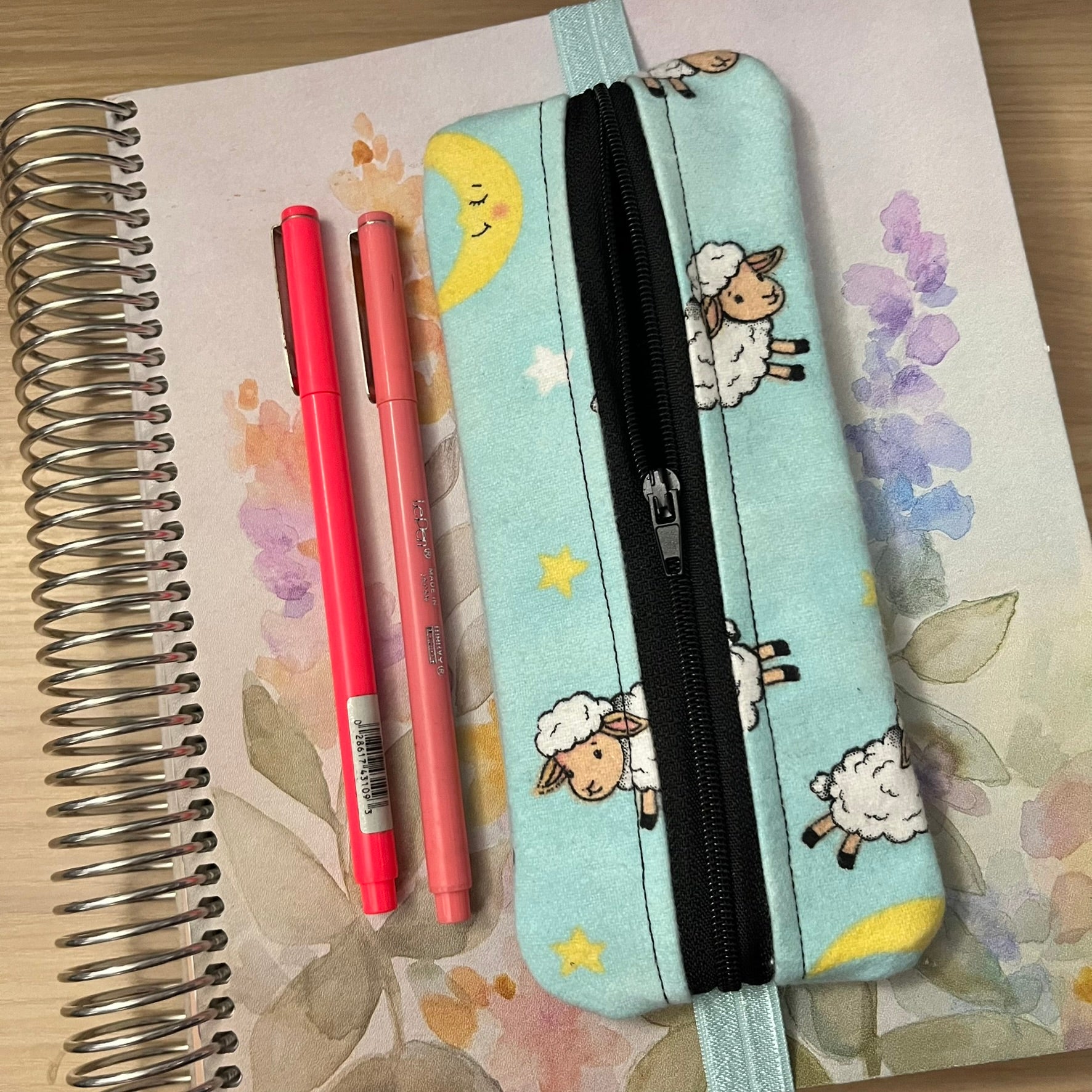 Stay organized and stylish with our LIMITED EDITION January 25' Counting Sheep and Moons Elastic Pen Holder Pouch. Made by hand in house. Made with 100% cotton printed fleece and a black canvas lining, it's perfect for fitting classic planner sizes or any items with a height of 9 inches or more. Keep your essentials easily accessible while adding a touch of fun to your daily routine.