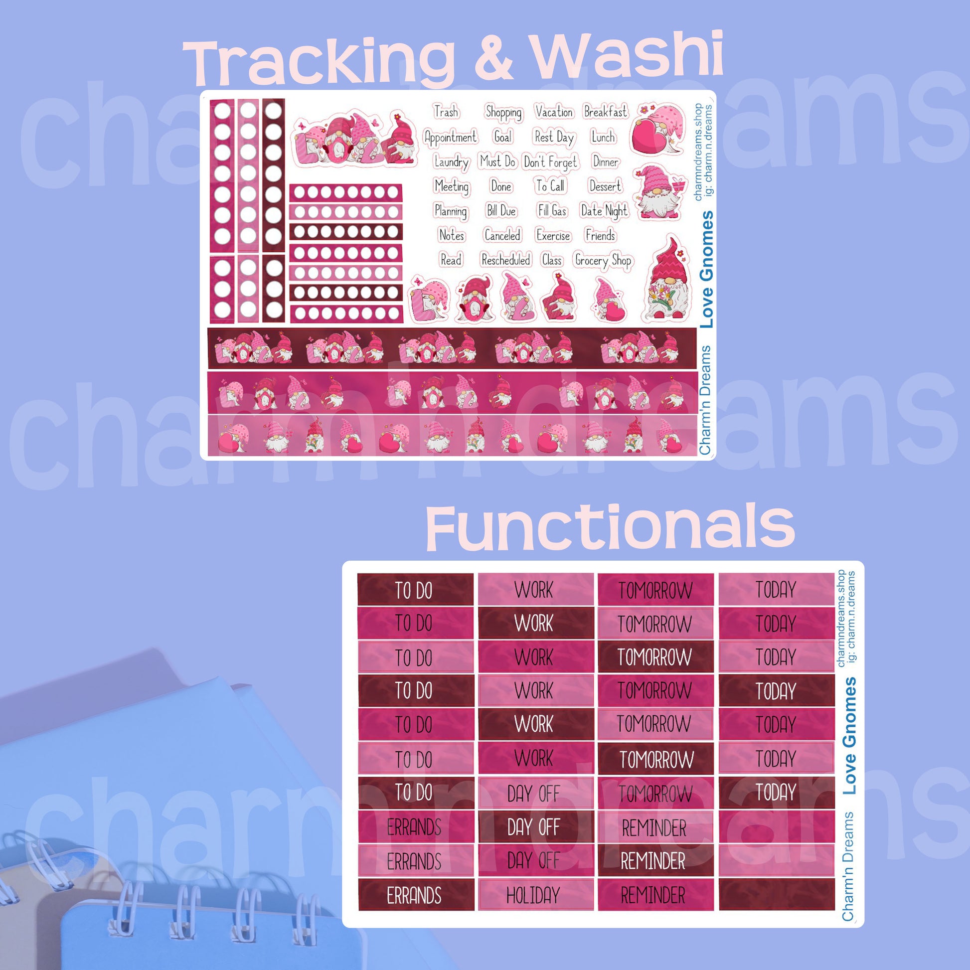Elevate your planner game with our Love Gnomes Premium Planner Sticker Kit! Featuring decorative elements, functional boxes, checkboxes, and accents, this kit will help you stay organized and add a touch of fun to your planner. Make every day feel like a celebration with our premium stickers.