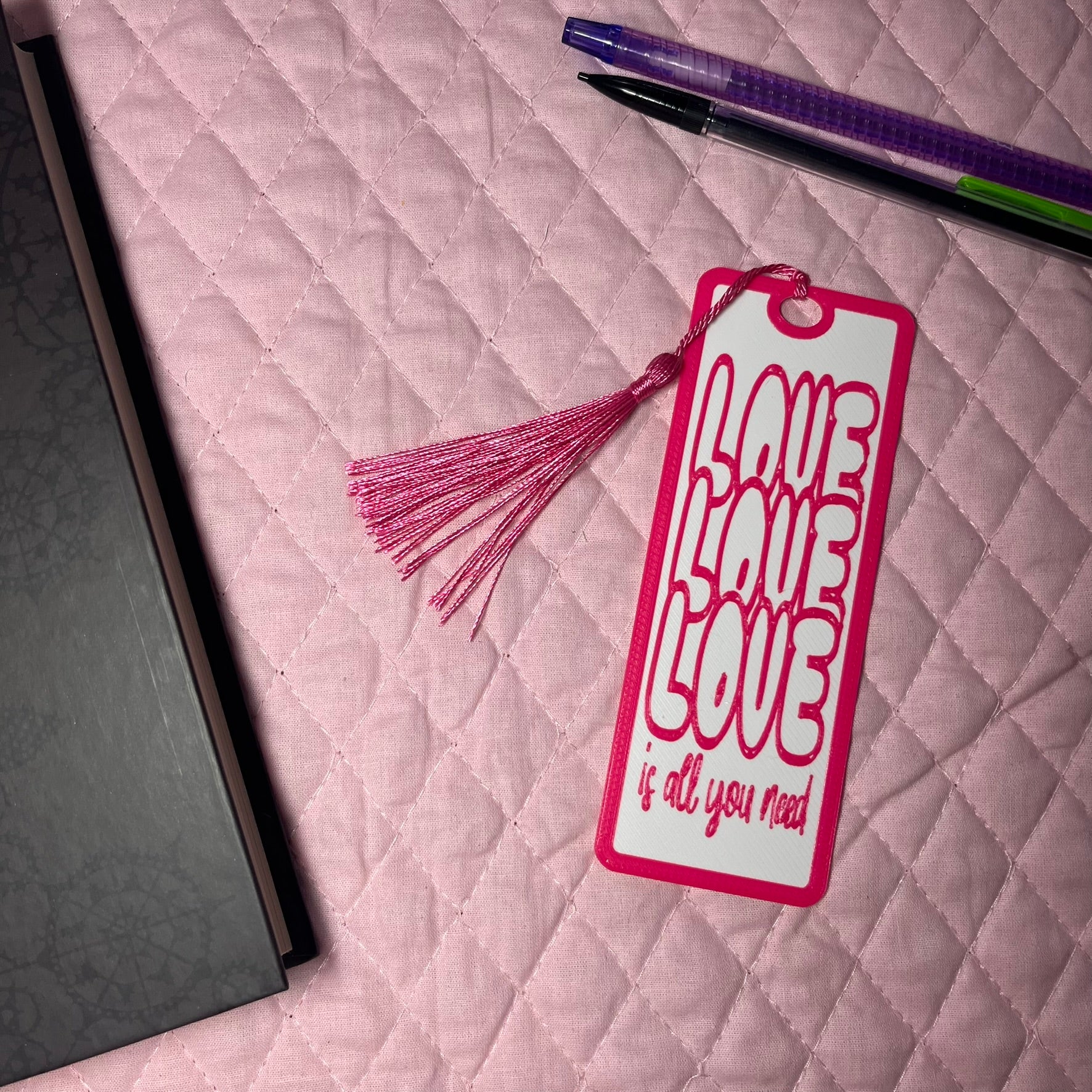 ALove is all you need 3d printed (PETG) Bookmark! The 3d printed file is created and printed in house for a fun and meaningful product.