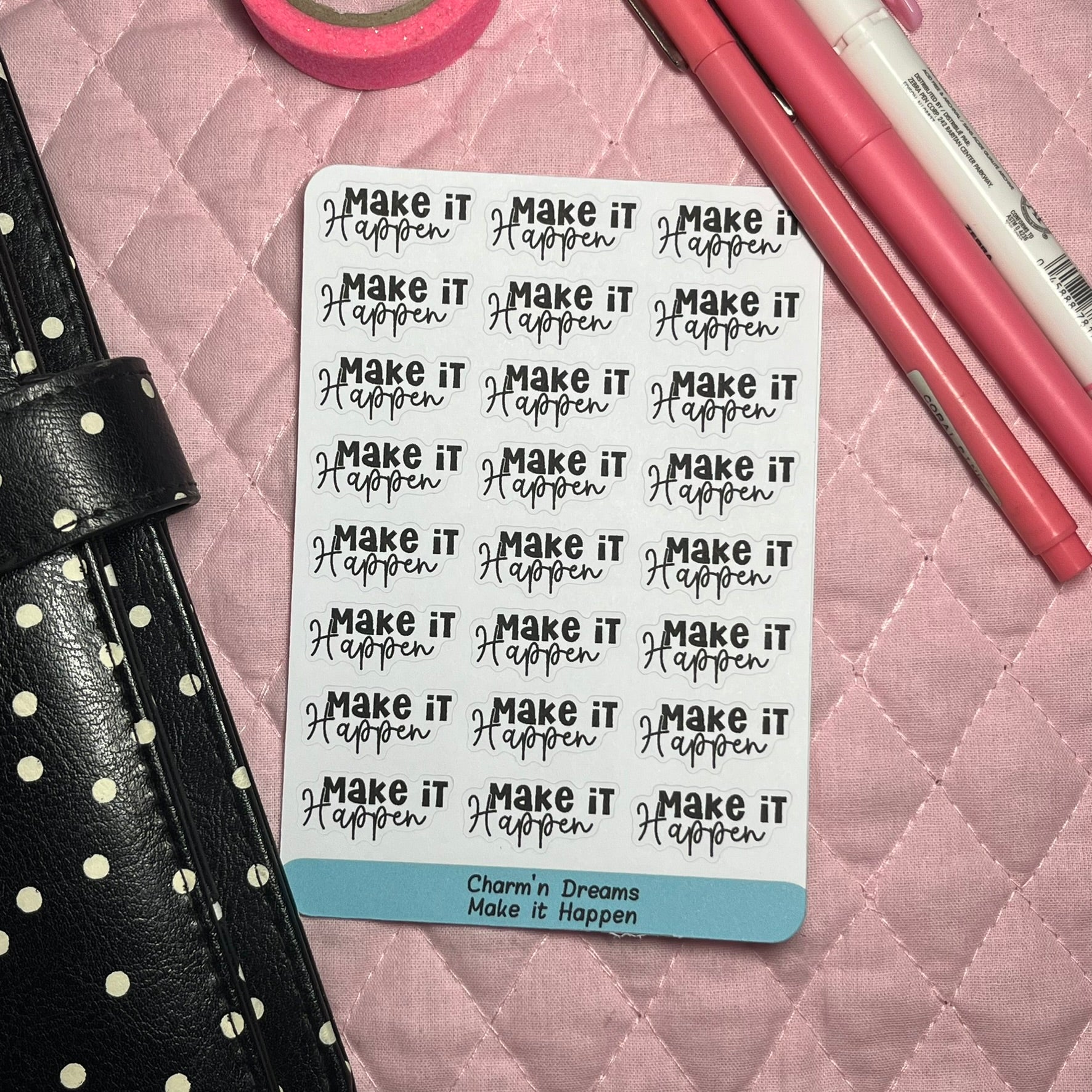 Elevate your planning game with our Make it Happen Functional Planner Stickers! Made with permanent matte sticker paper, these stickers add a touch of positivity and motivation to your daily routine. Perfect for affirmations and goal-setting in your planner or journal. Let us help you make it happen!