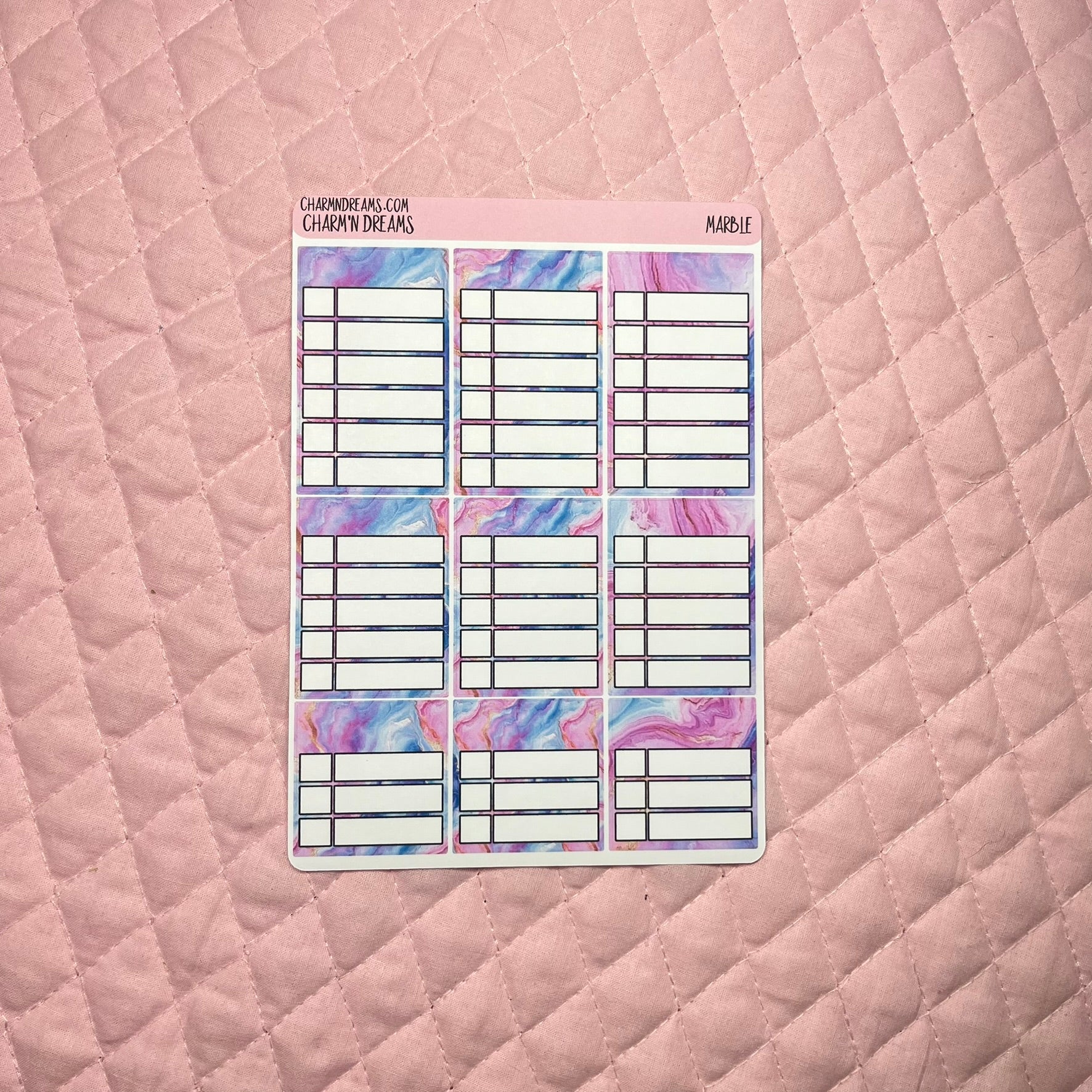 Elevate your planning game with our Marble Planner Sticker Kit! These gorgeous marble-patterned stickers add a touch of elegance to any planner page while keeping your schedule organized and fun. Mix and match these playful designs to highlight important dates, track habits, or simply add a splash of personality to your daily planning routine!