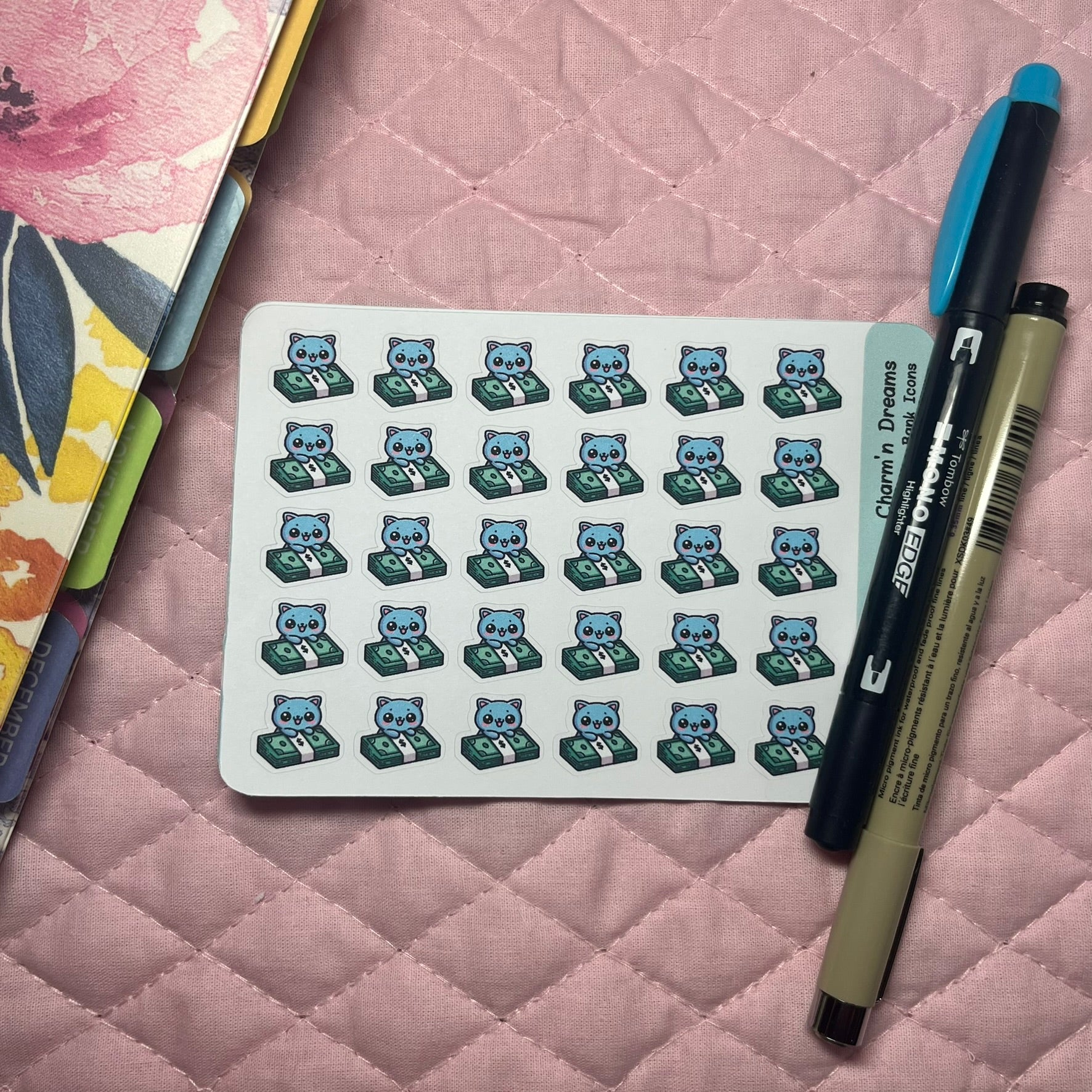 Elevate your planning and journaling game with the Money Cash Cat Icon Planner Stickers! Crafted from durable matte sticker paper, these stickers are a delightful addition to your daily routine for staying organized and adding some playful flair. Please note, these stickers are not waterproof or water resistant.