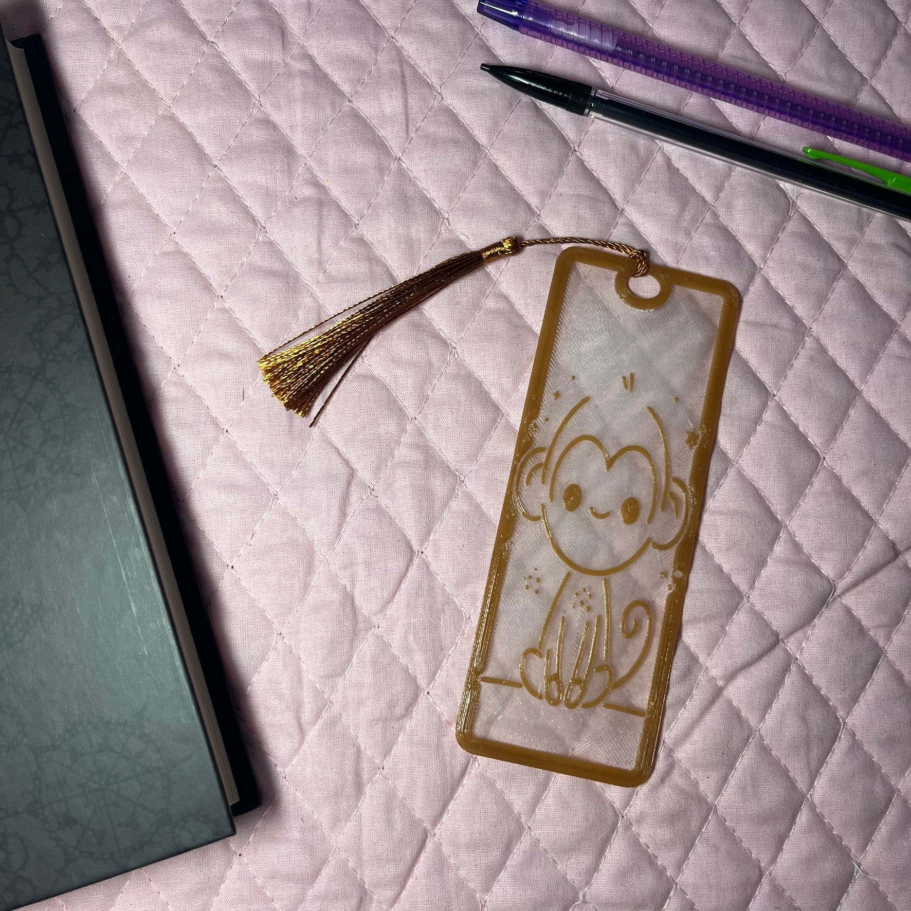 A Monkey Bookmark 3d printed (PETG) Bookmark! The 3d printed file is created and printed in house for a fun and meaningful product.