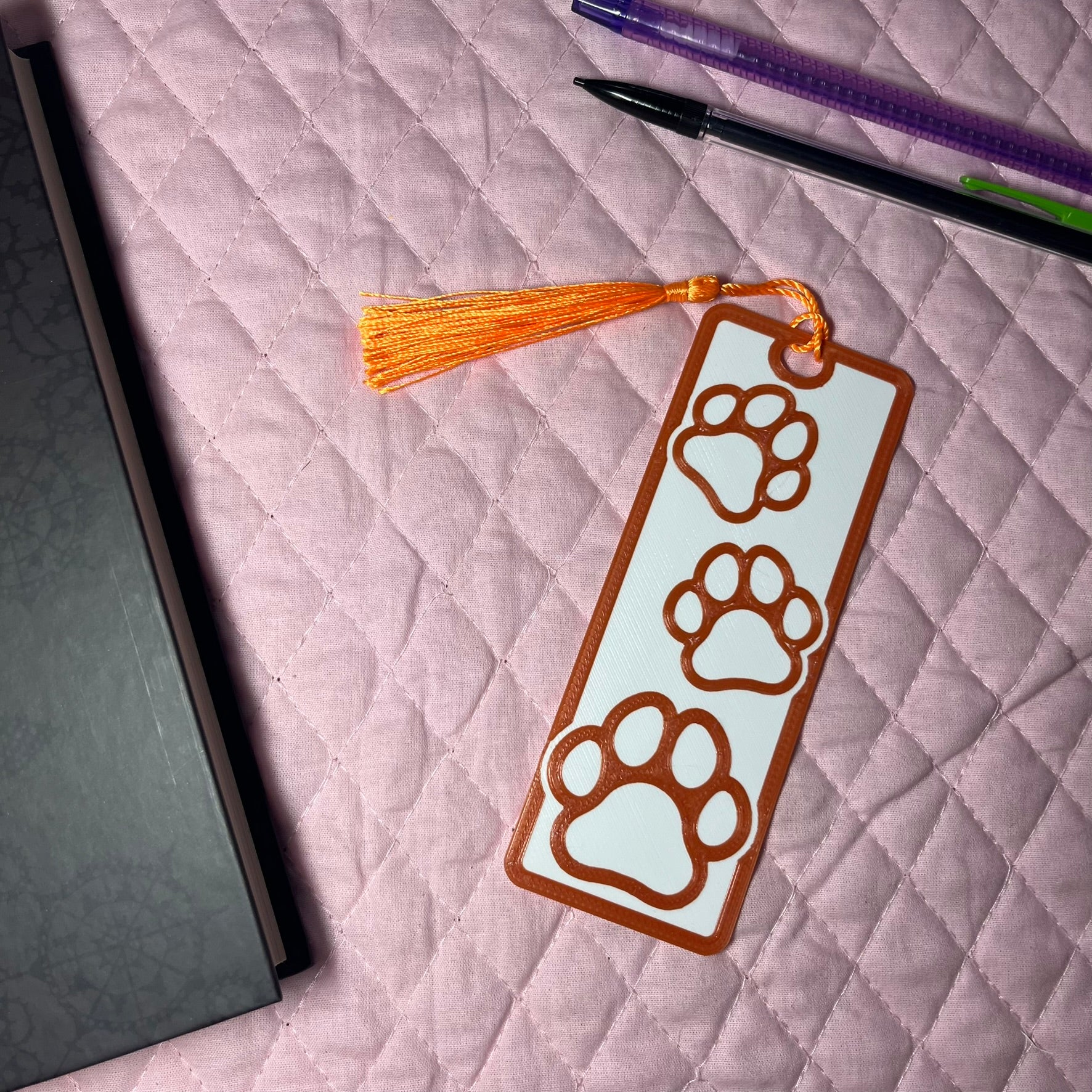 Orange Paws Bookmark 3d printed (PETG) Bookmark! The 3d printed file is created and printed in house for a fun and meaningful product.