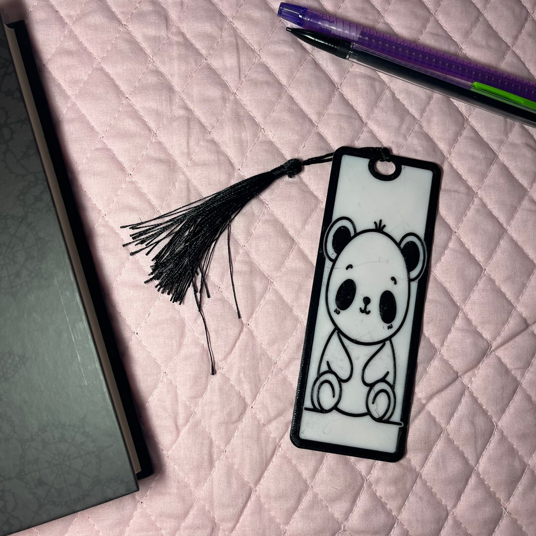 A Panda Bookmark 3d printed (PETG) Bookmark! The 3d printed file is created and printed in house for a fun and meaningful product.
