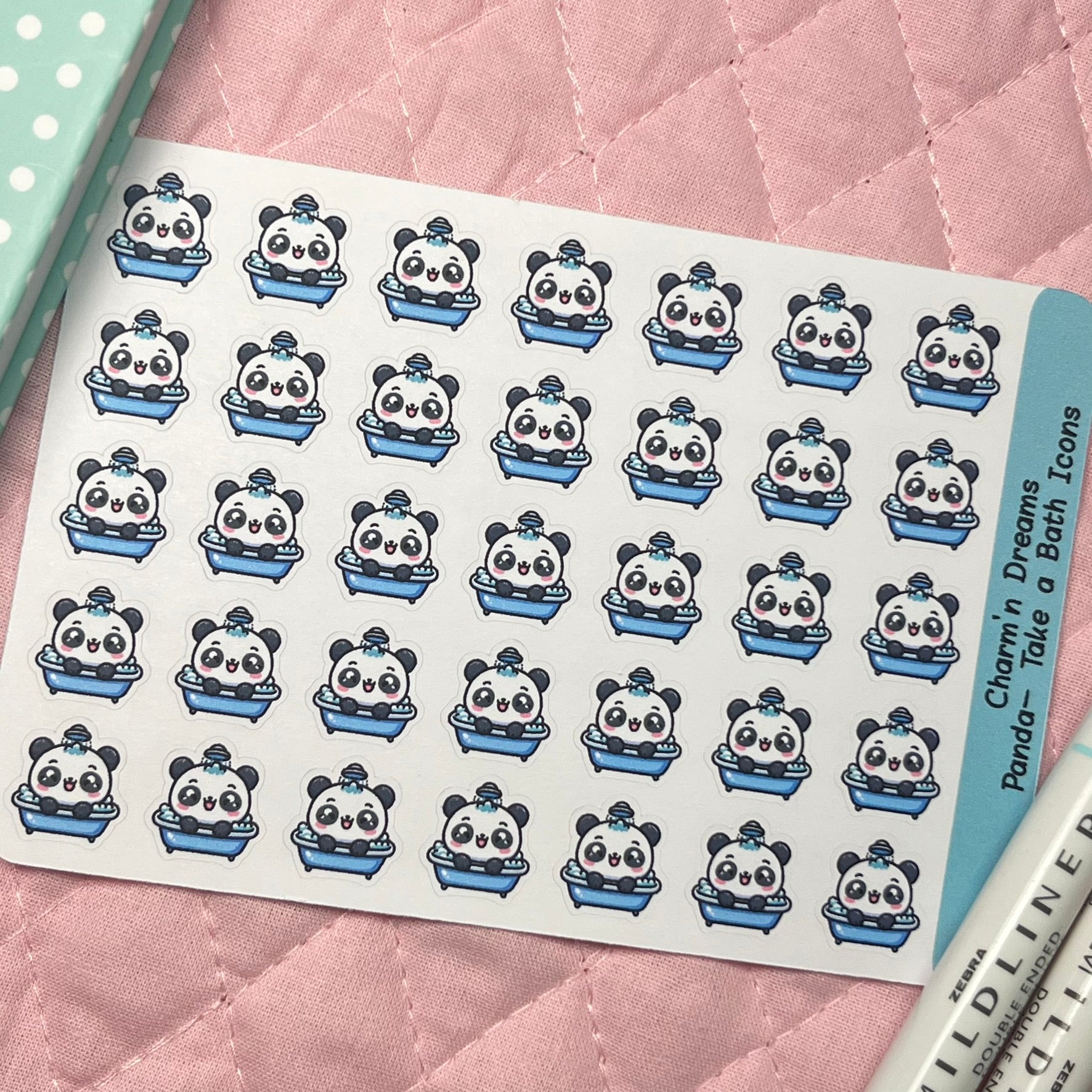 Panda Take a Bath Bath Time Icon Planner Stickers