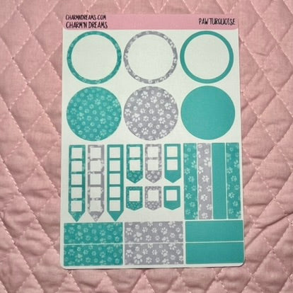 Paw Turquoise Planner Sticker Kit