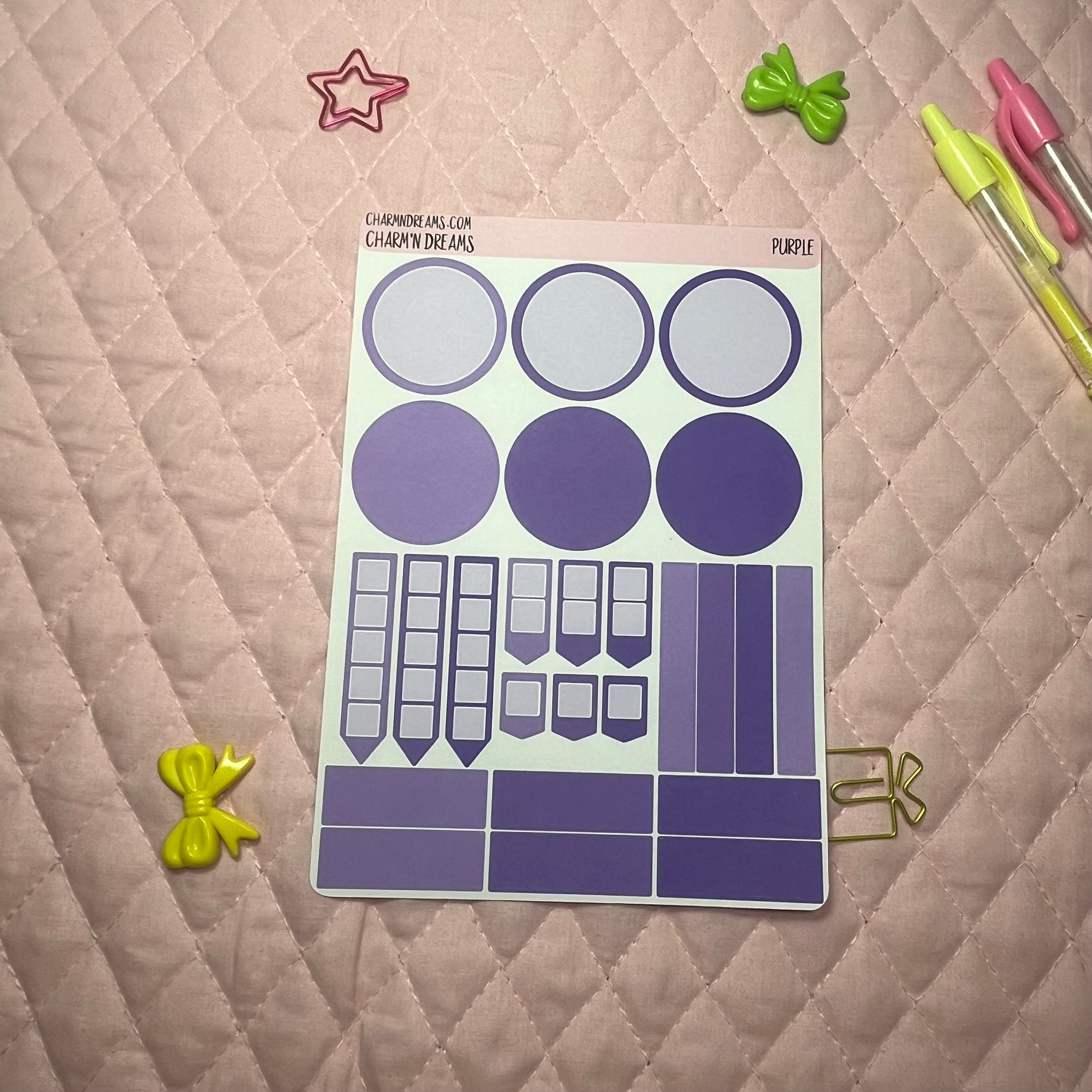 Our Purple Planner Sticker Kit is the perfect stand alone or accent sticker kit! Mix and Match your favorite colors or dedicate solid colors to color code your projects or lifestyle. Perfect for journaling and bujo lovers.