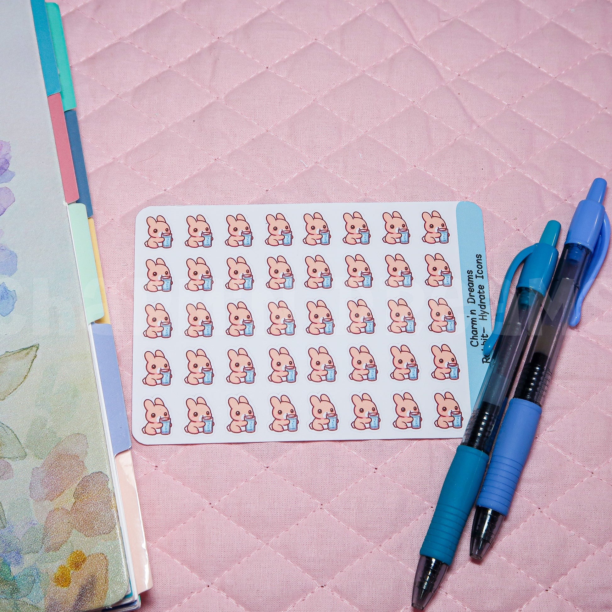 Keep your planner or journal organized and adorable with Rabbit Hydrate Icon Planner Stickers. These cute animal icons will add a touch of fun to your daily planning, while also reminding you to stay hydrated. Stay on top of your tasks while showing off your love for cute characters.