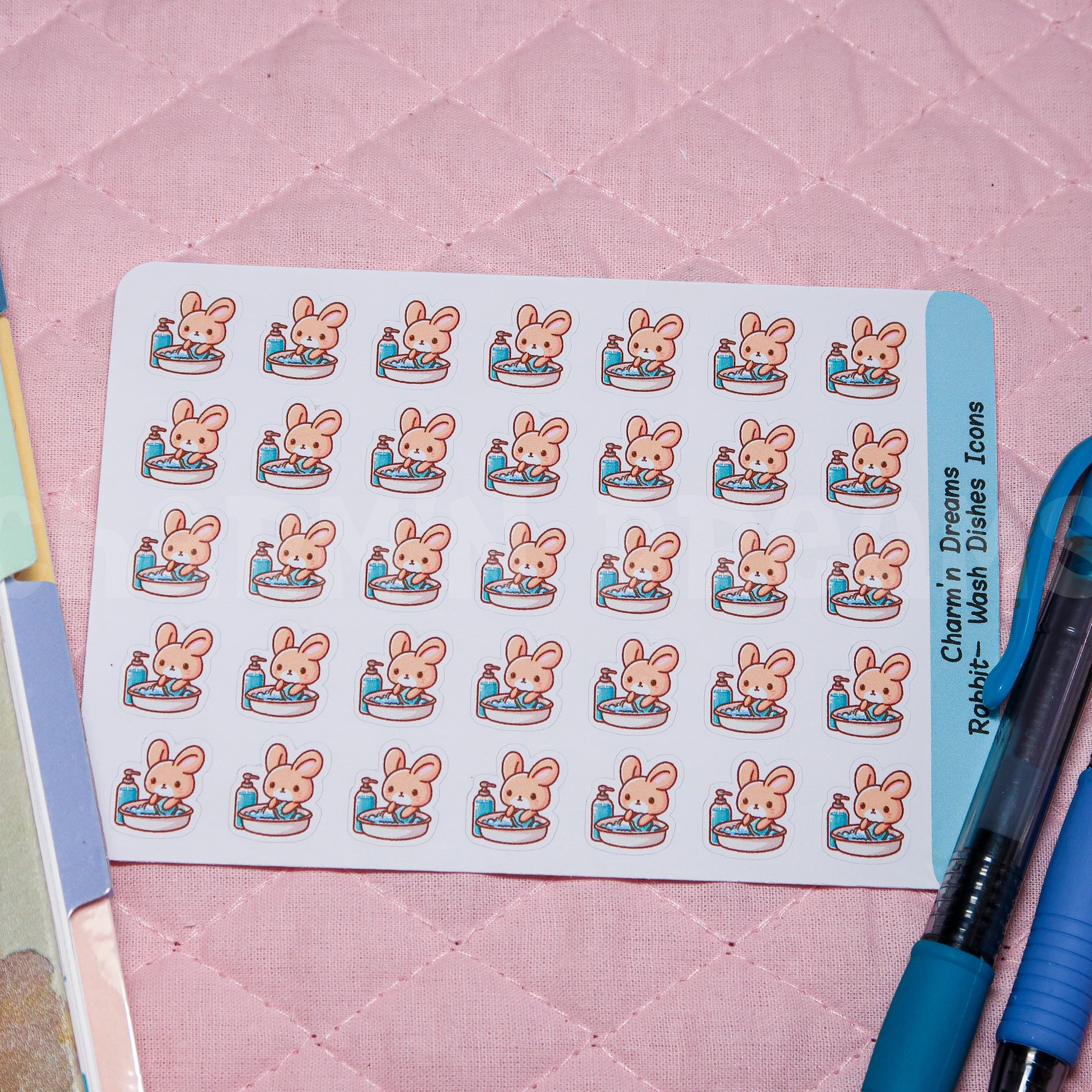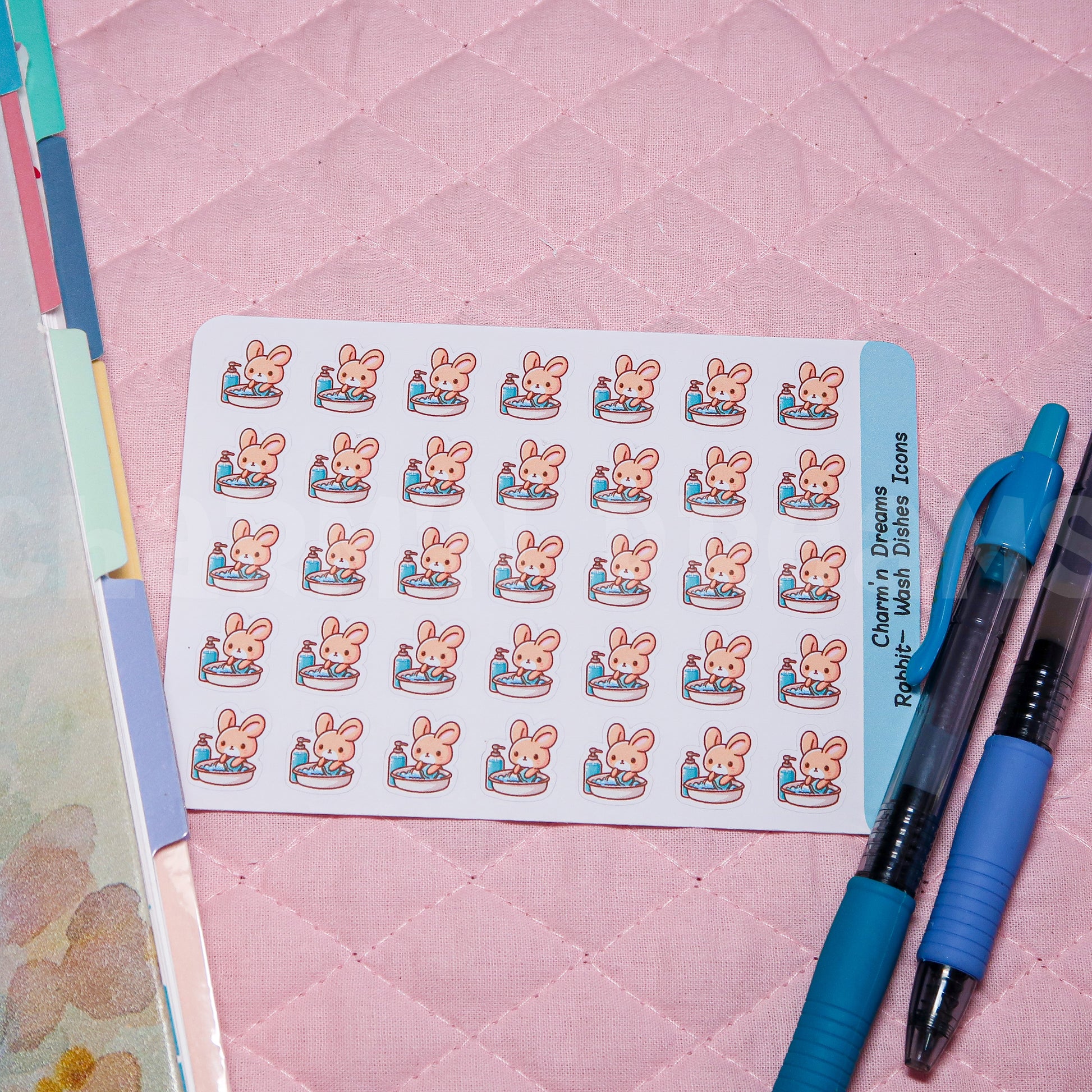 Add some extra fun to your planner or journal with our Rabbit Wash Dishes Icon stickers! These cute animal icons will make planning and organizing your day a little more enjoyable. Perfect for any animal lover, these stickers are a must-have for any planner.