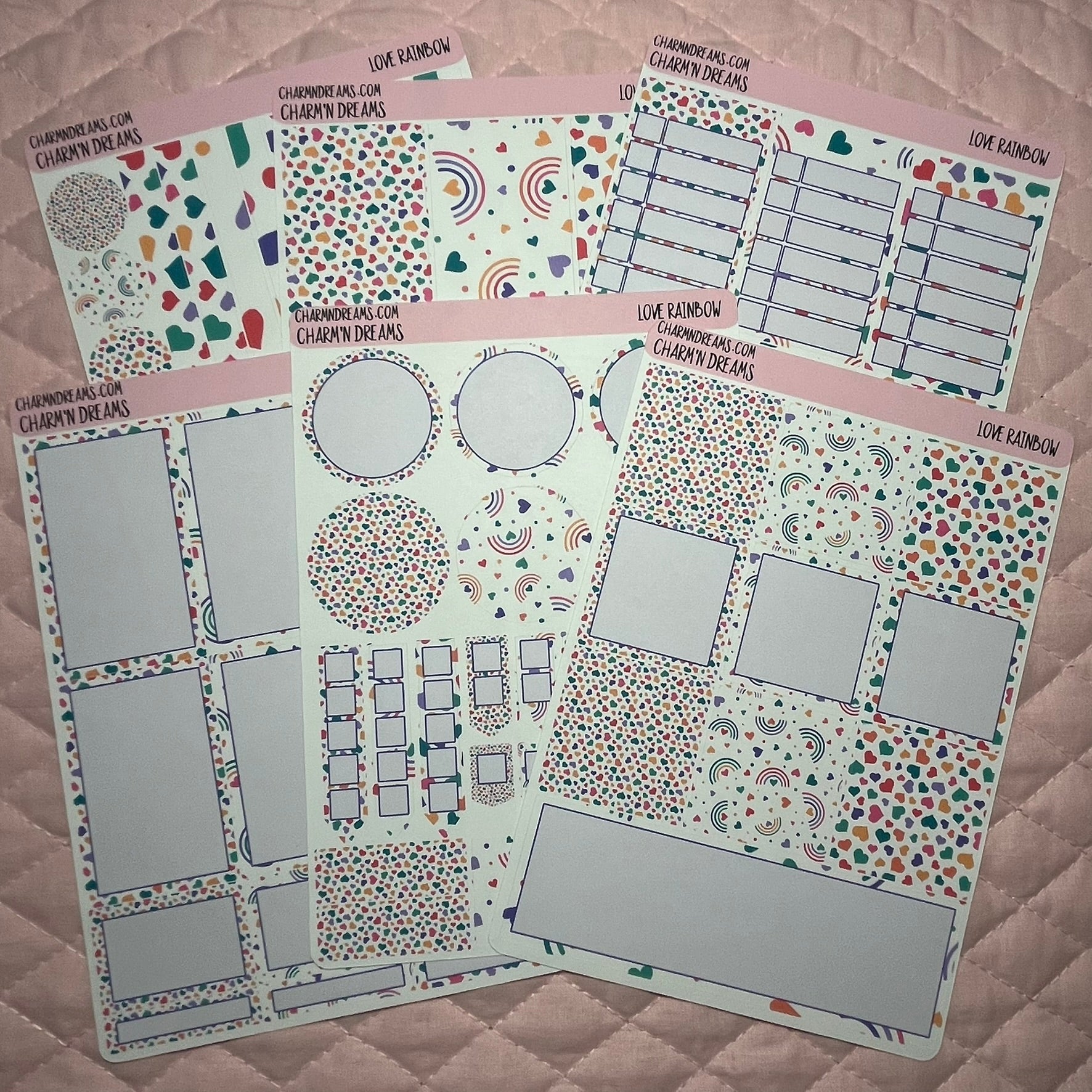 A fan favorite with happines and love our Rainbow Hearts Planner Sticker Kit will brighten any planner or journal spread.