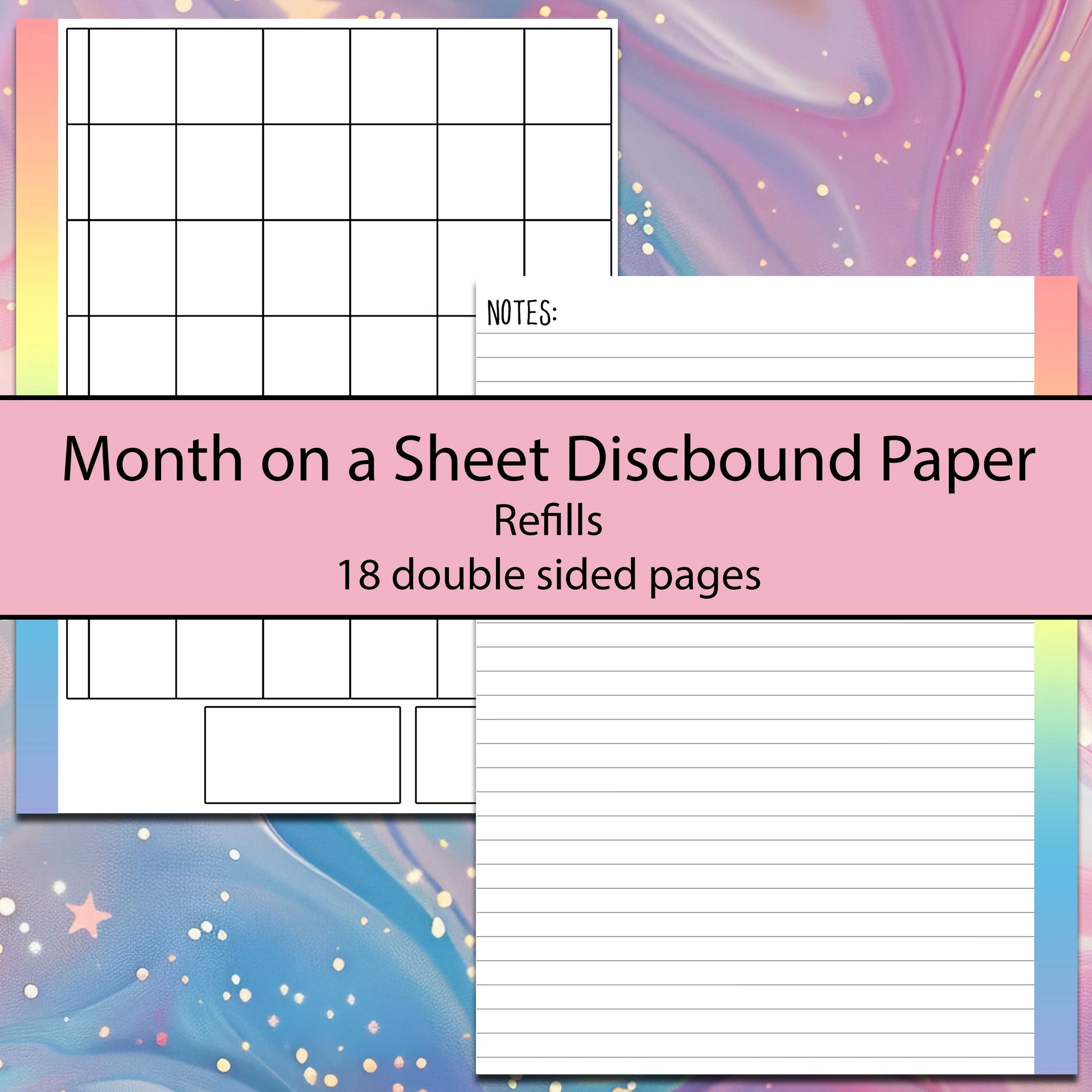 Rainbow Left Month on a Sheet Discbound Refill Sheets - Multiple Sizes