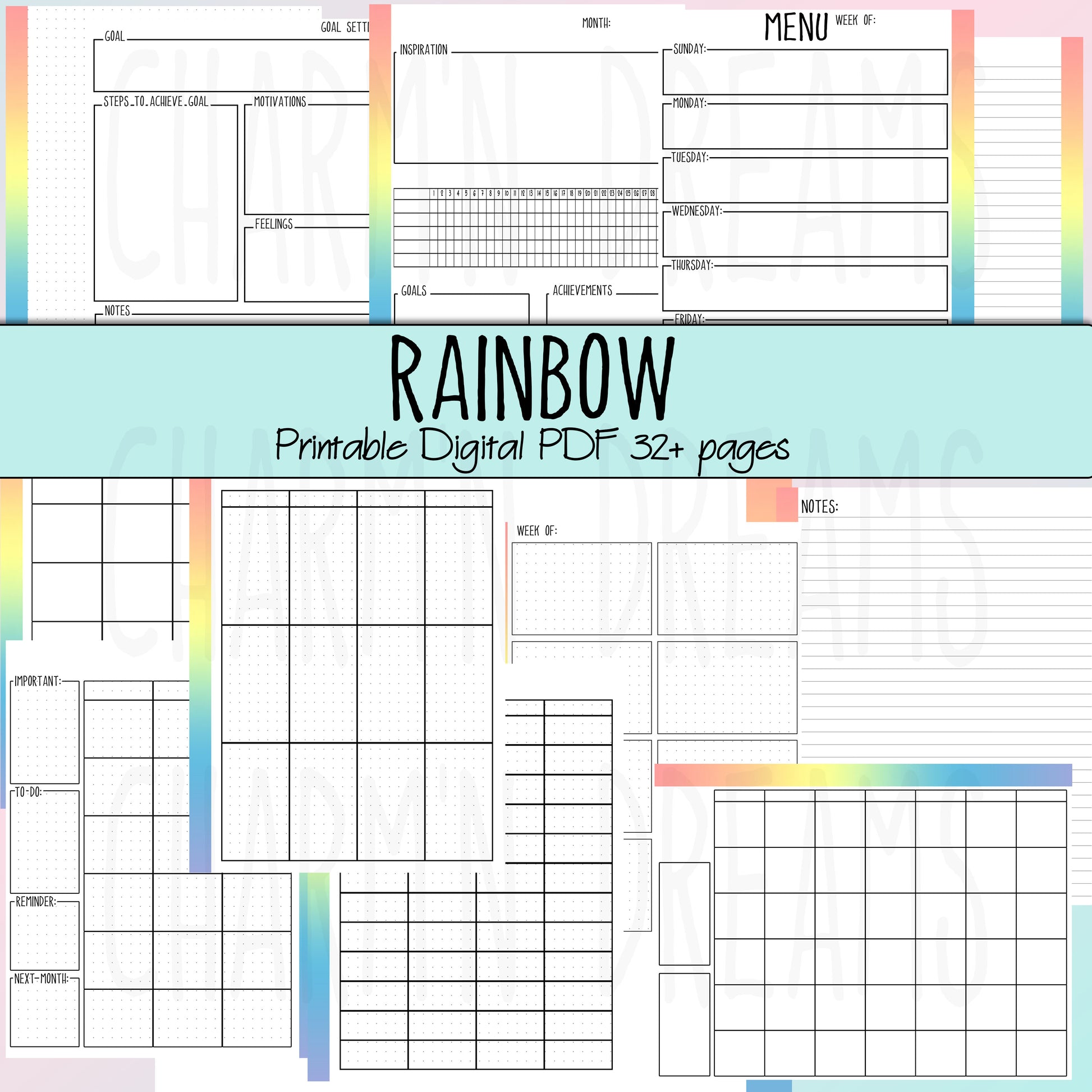 Rainbow Printable Planner Pages- 7.25 x 9" - Digital Download
