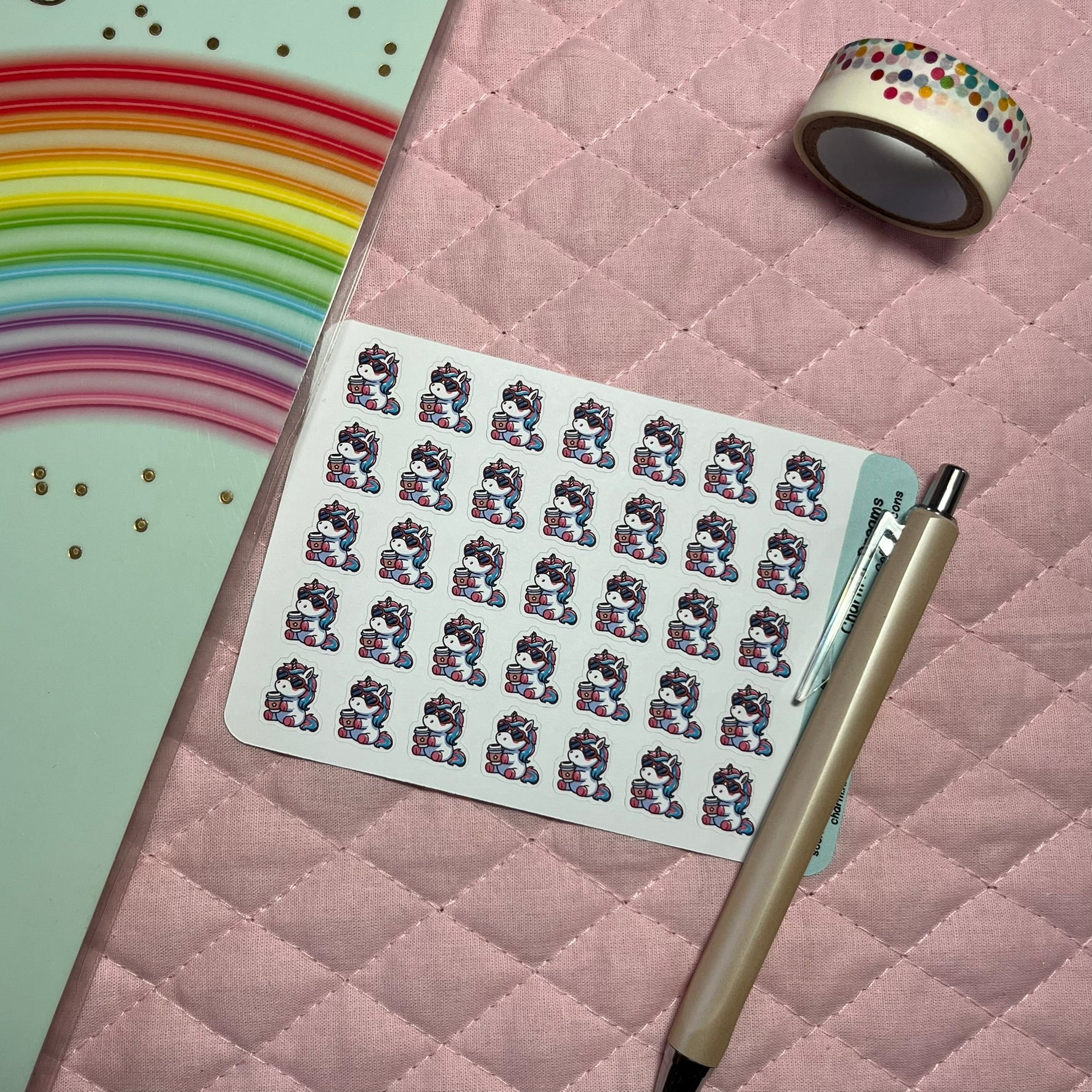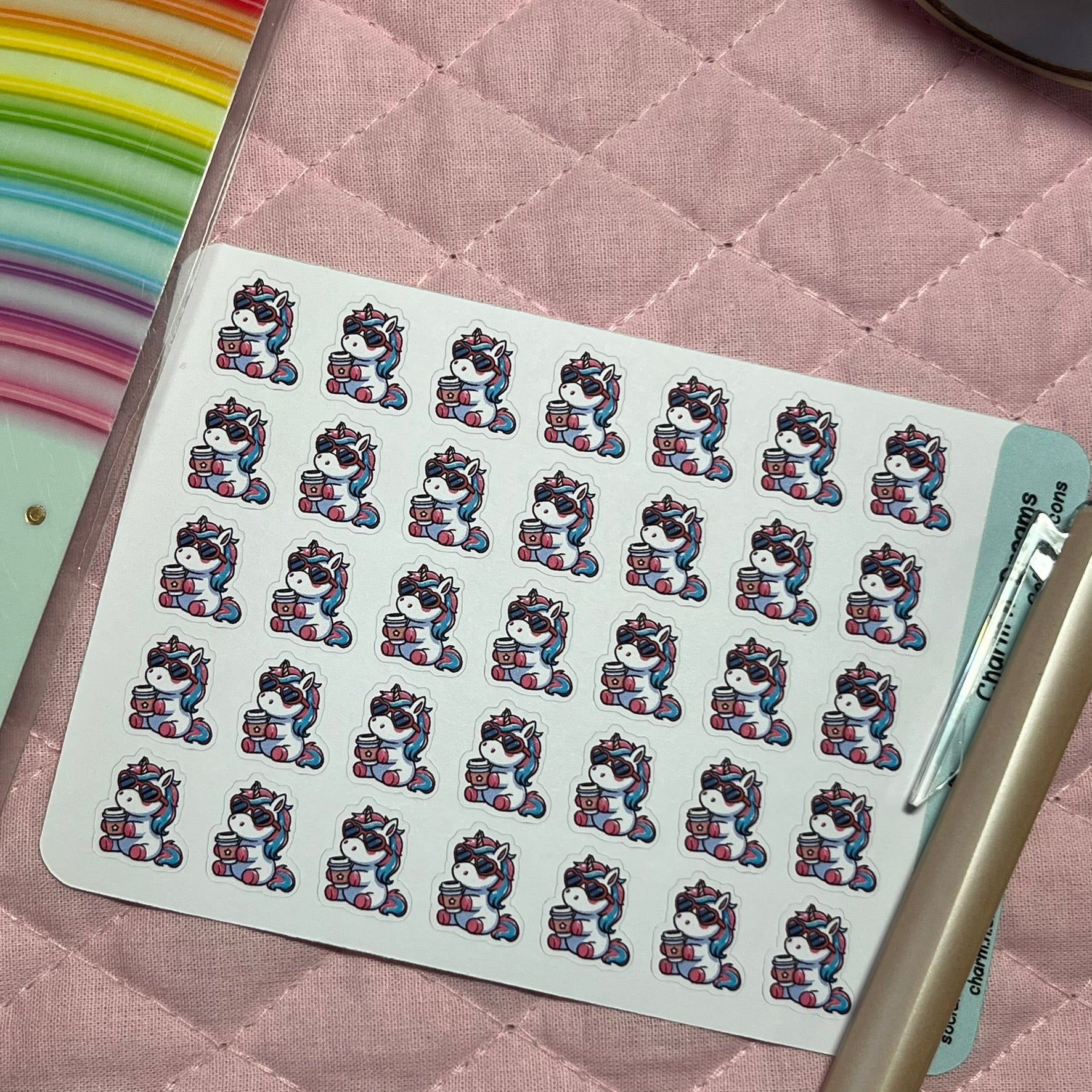 Rainbow Unicorn Coffee Planner Stickers are the perfect addition to remind yourself to get that treat! This is part 2 of our unicorn collection. Express your unique style and add a touch of whimsy to your planner or journal. These adorable stickers are the perfect way to decorate and bring joy to your daily planning. Make your wishes come to life with these charming stickers.