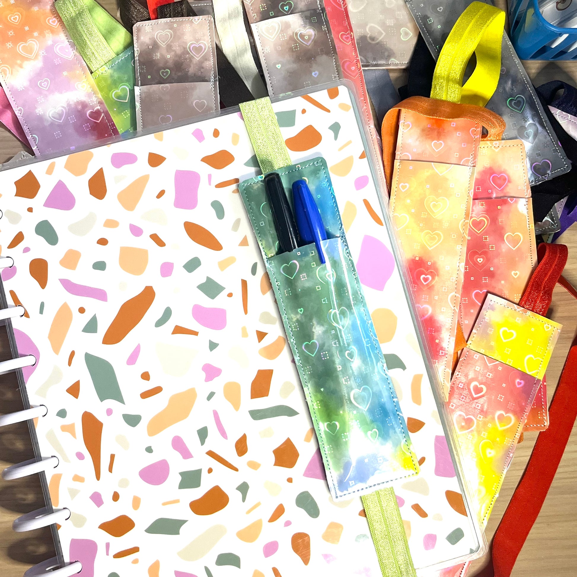 Keep your favorite book close and your pens closer with our Reflective Hearts Elastic Pen Holder/Bookmark! Designed to fit books 9.25 inches tall or larger, it securely holds two pens or writing utensils while adding a splash of charm. Each holder is handmade, featuring a unique, playful heart pattern—perfect for picking your favorite companion for reading and note-taking fun.
