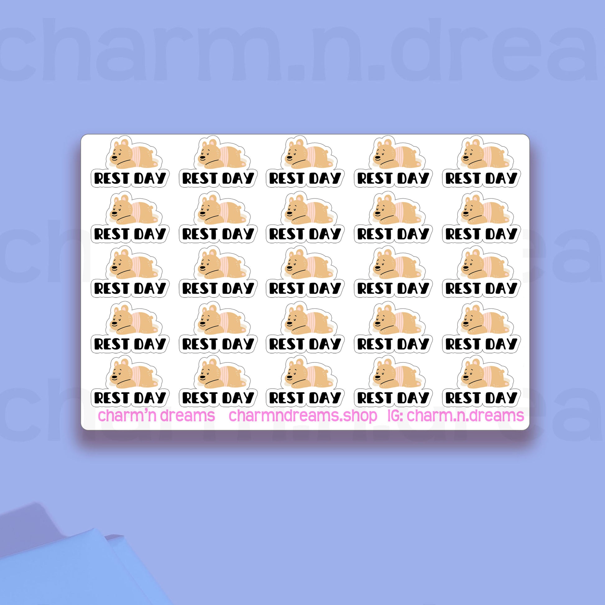 Efficiently mark your Rest Days with these planner stickers! Each sheet contains 25 permanent matte stickers, perfect for your monthly, weekly, daily planner, calendar, or bullet journal. At .5 inches high, they are the perfect size for any planner. Order a sheet and simplify your cleaning schedule!