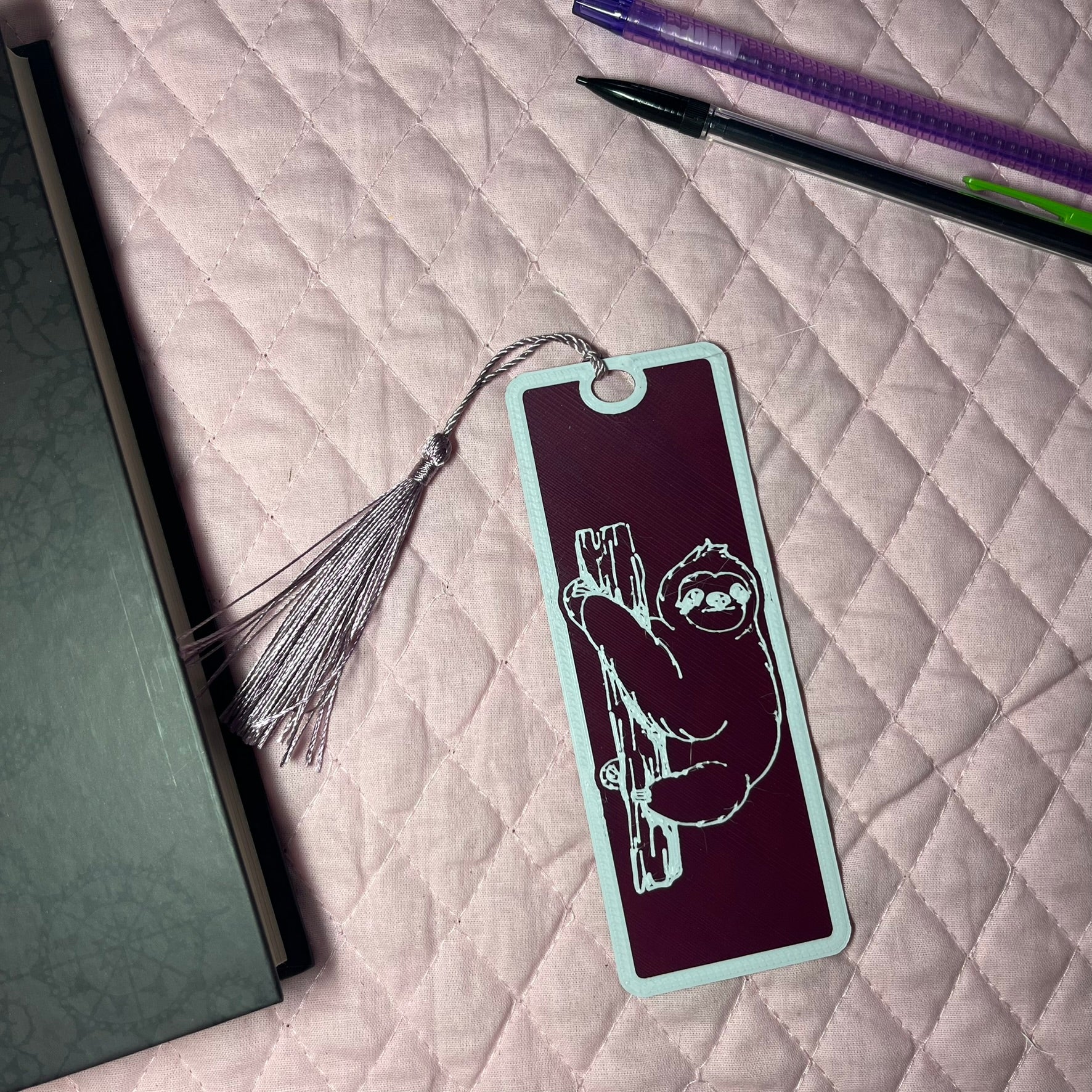 Sloth Chillin' Bookmark 3d printed (PETG) Bookmark! The 3d printed file is created and printed in house for a fun and meaningful product.