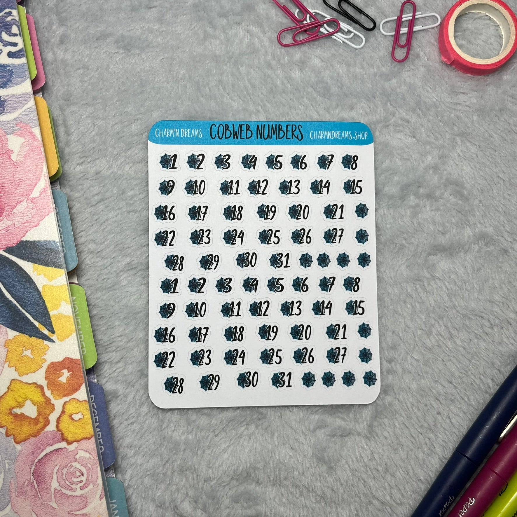 Tiny Cobweb Number Planner Sticker Sheet